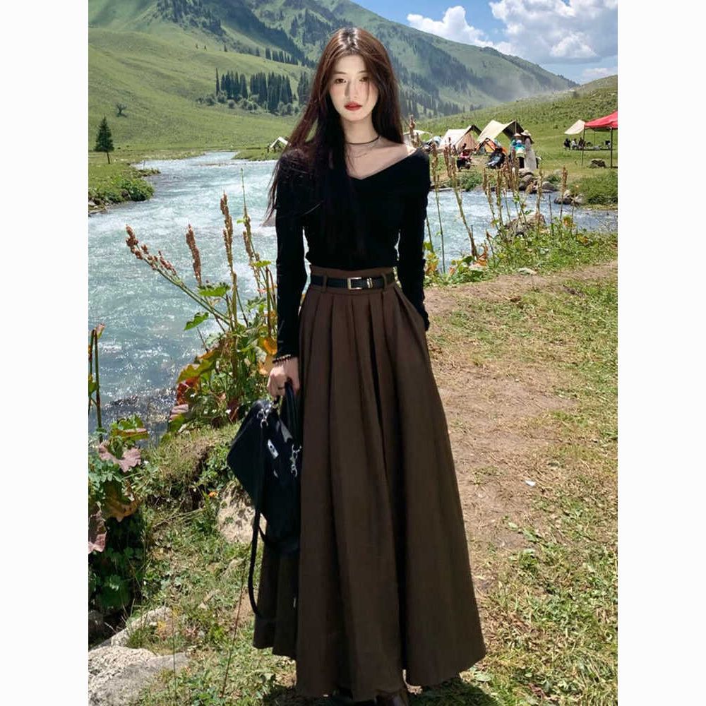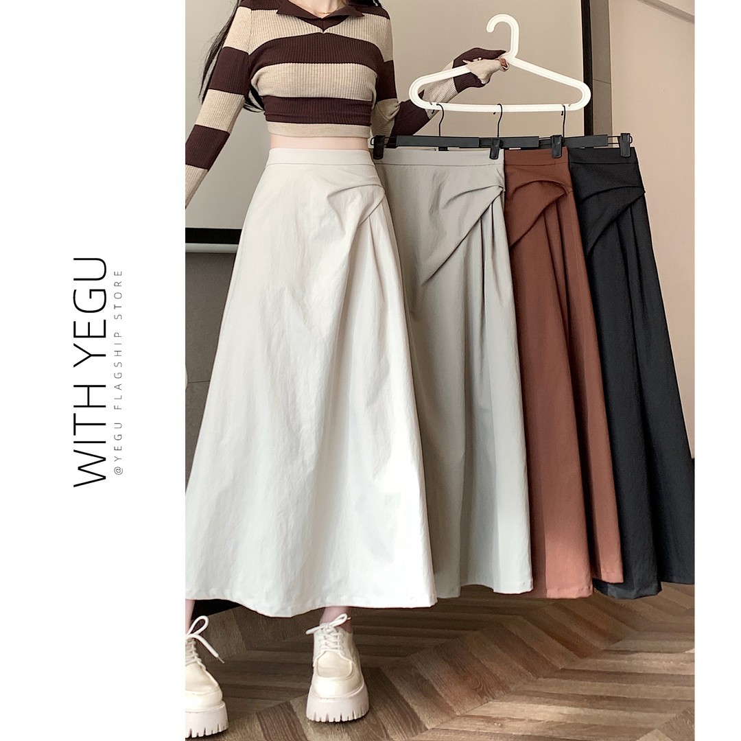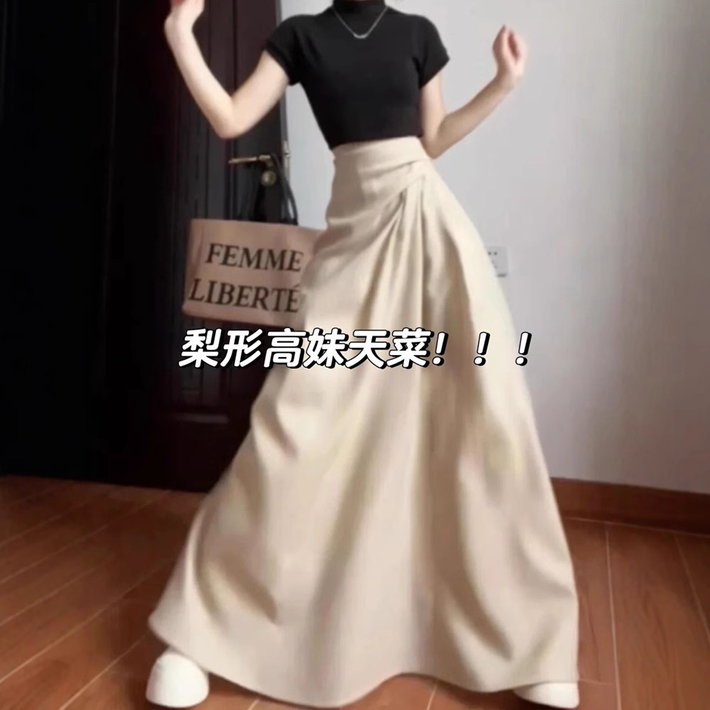 春秋の長いタイプのスーツは半身のスカートの女性の韓国版の2025の新型の高い腰がやせている傘のスカートの気質のa字のスカートを現します。