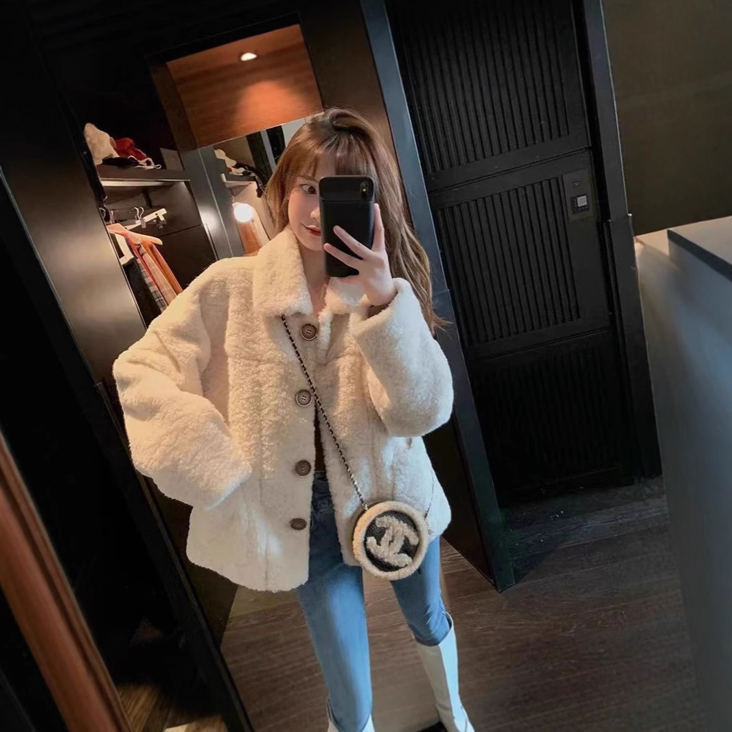 ファッションの高級感のコートの女性の秋冬の2024年の新型のゆったりしている長袖の短いタイプのカジュアルな気質の韓国版の百合の上で
