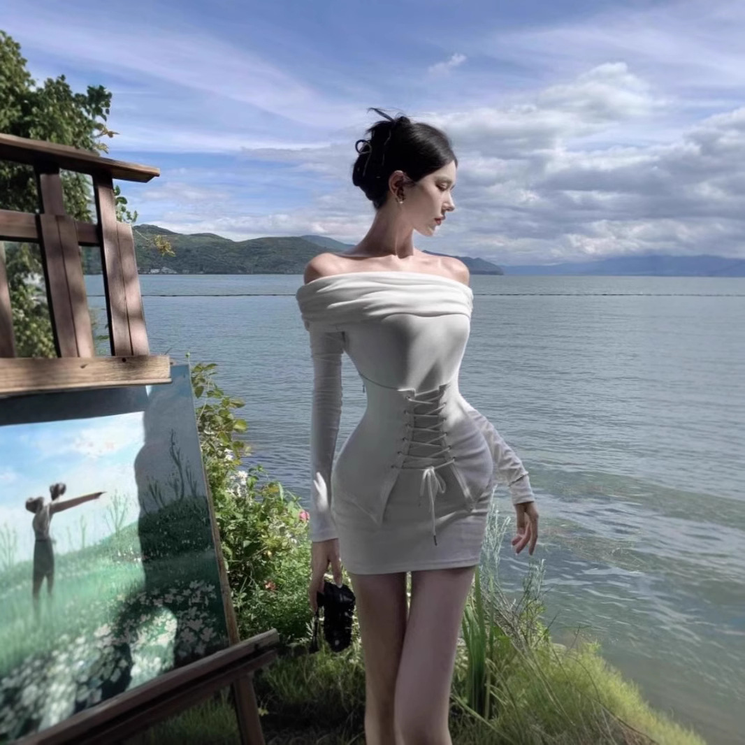 ウエスト一字襟泡袖蓬蓬蓬姫ワンピース夏2024新優しい少女砕花スカート