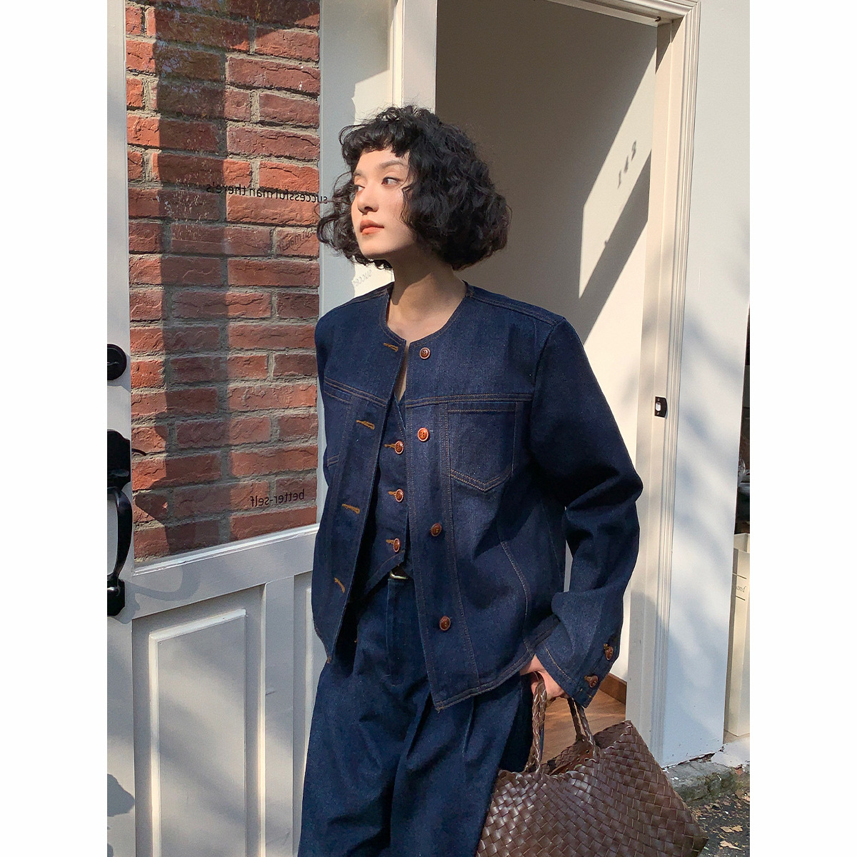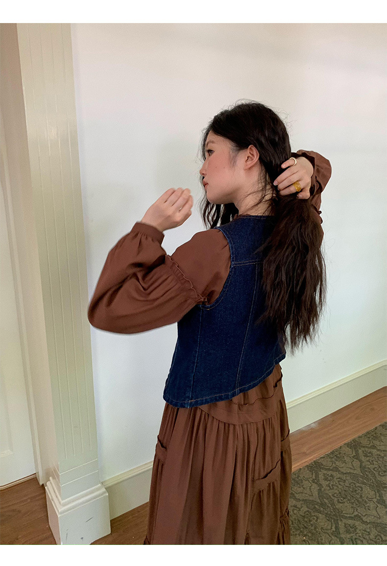 【特別価格・返品交換不可】秋冬レトロデザインデニムベストウォッシュ加工アウターカーディガン251207