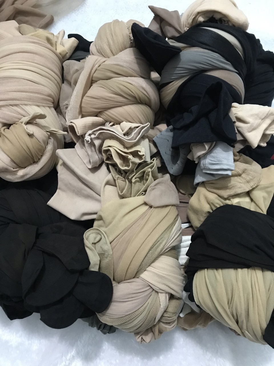 使い捨てストッキング工場は二等品の微瑕疵ストッキングを処理します。