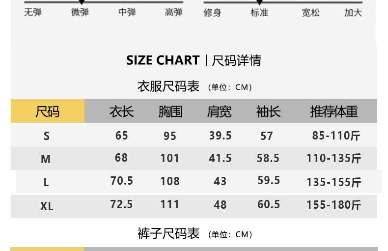S 推奨 85 ~ 55kg (150 ヤード),M 推奨 55-67.5kg (160 ヤード),L 推奨 67.5-77.5kg (170 ヤード),XL 推奨 77.5-90kg (180 ヤード)