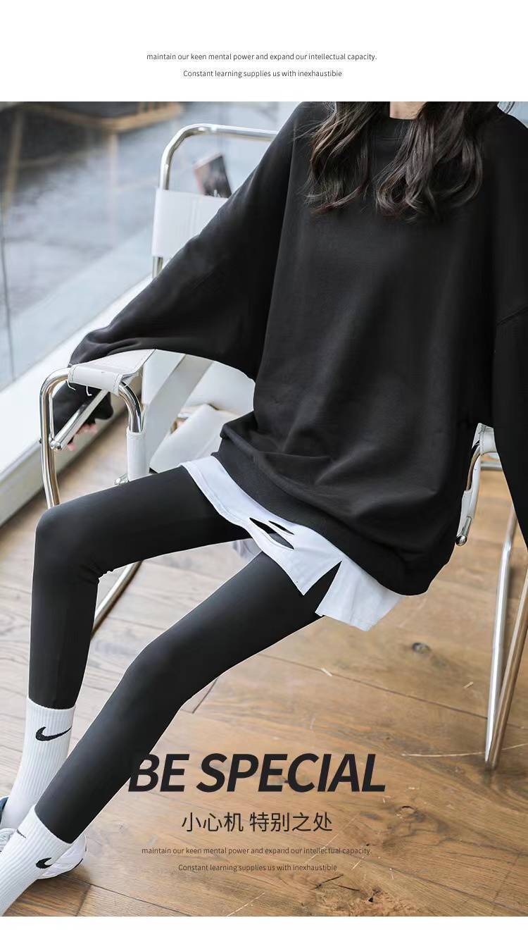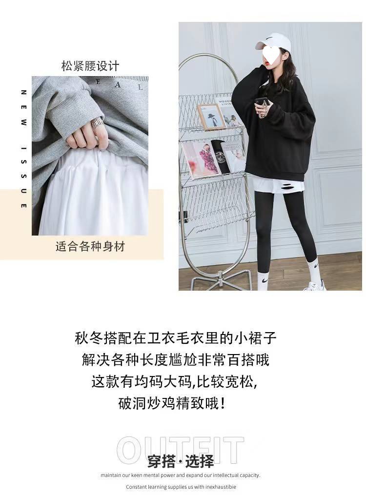 純綿防走光衛衣は短いスカートを重ねて着ています。