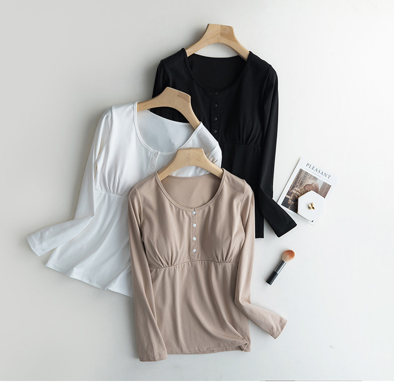 胸パッド付き純綿授乳服長袖クロスタイプ下着を着ない月子服妊婦の産後の授乳服