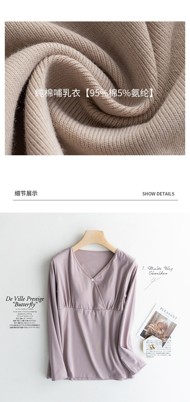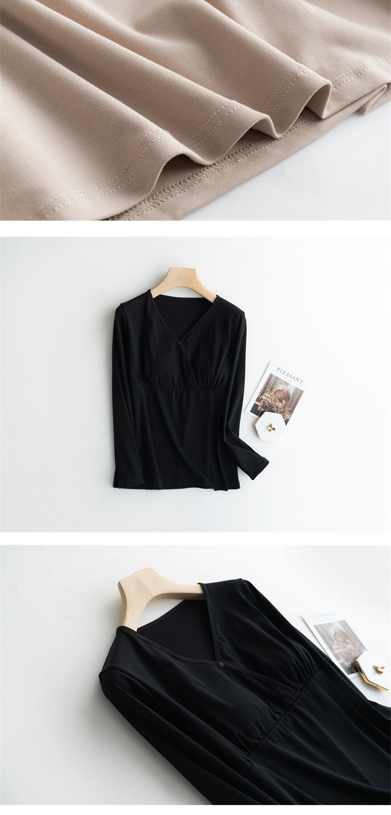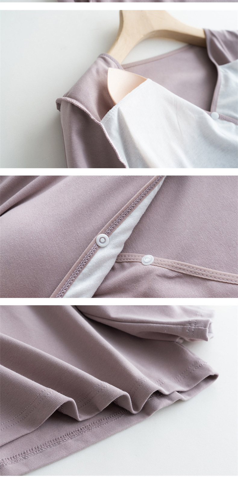 授乳用ホームウェア、薄手パジャマ、妊娠中外着用可能マタニティウェア、産後授乳服、春用インナー、外出着としても着用可能
