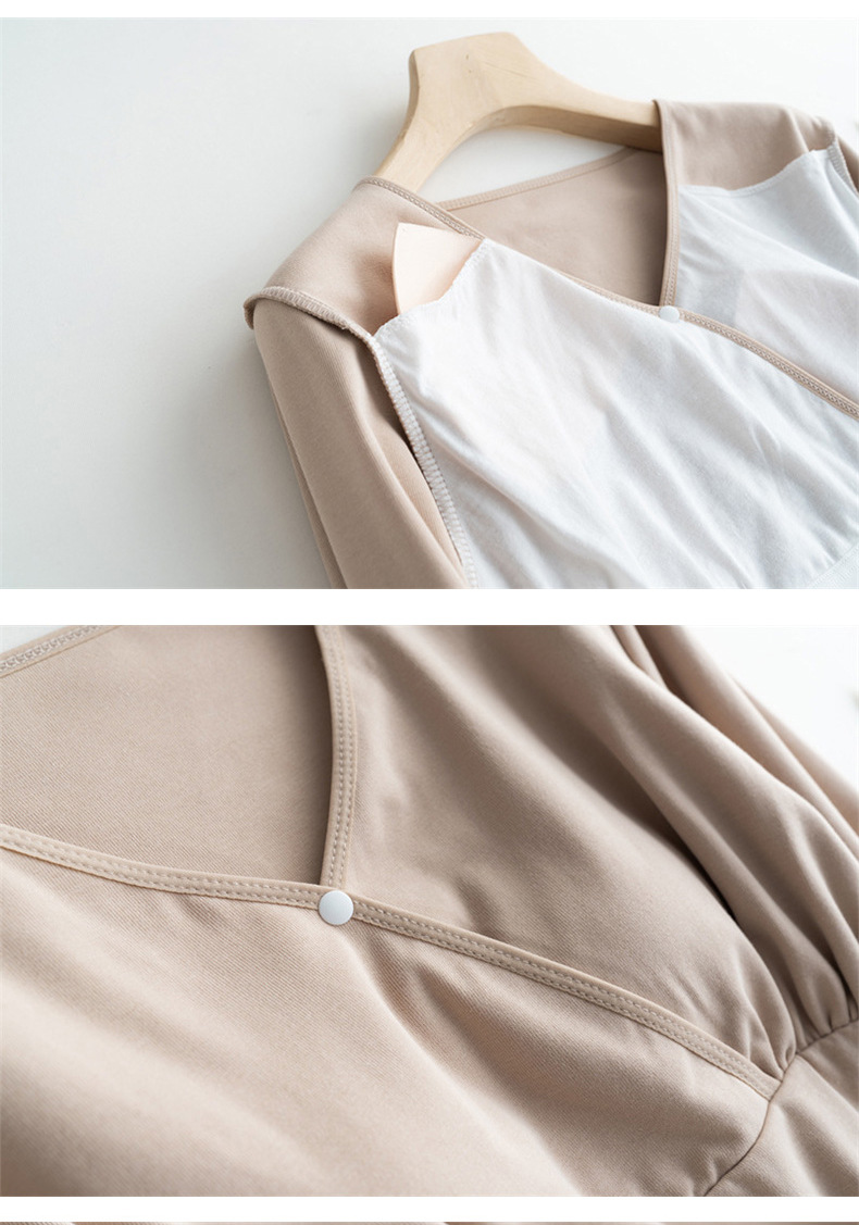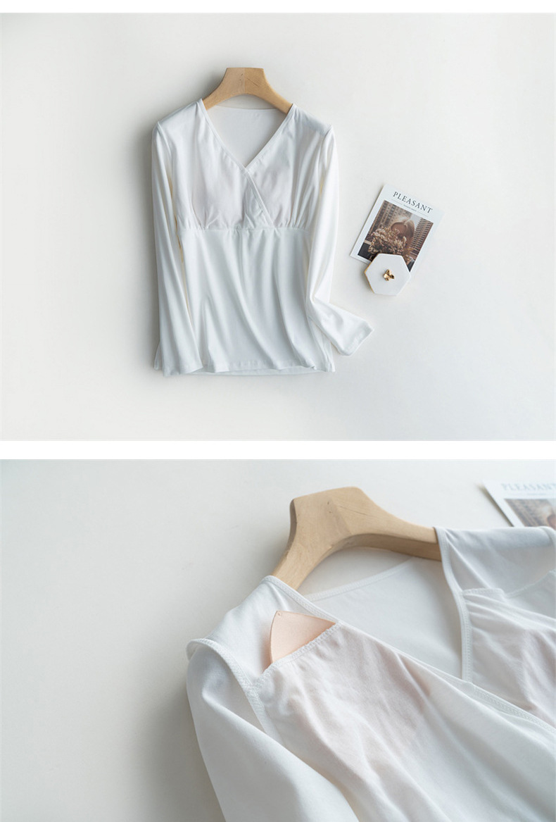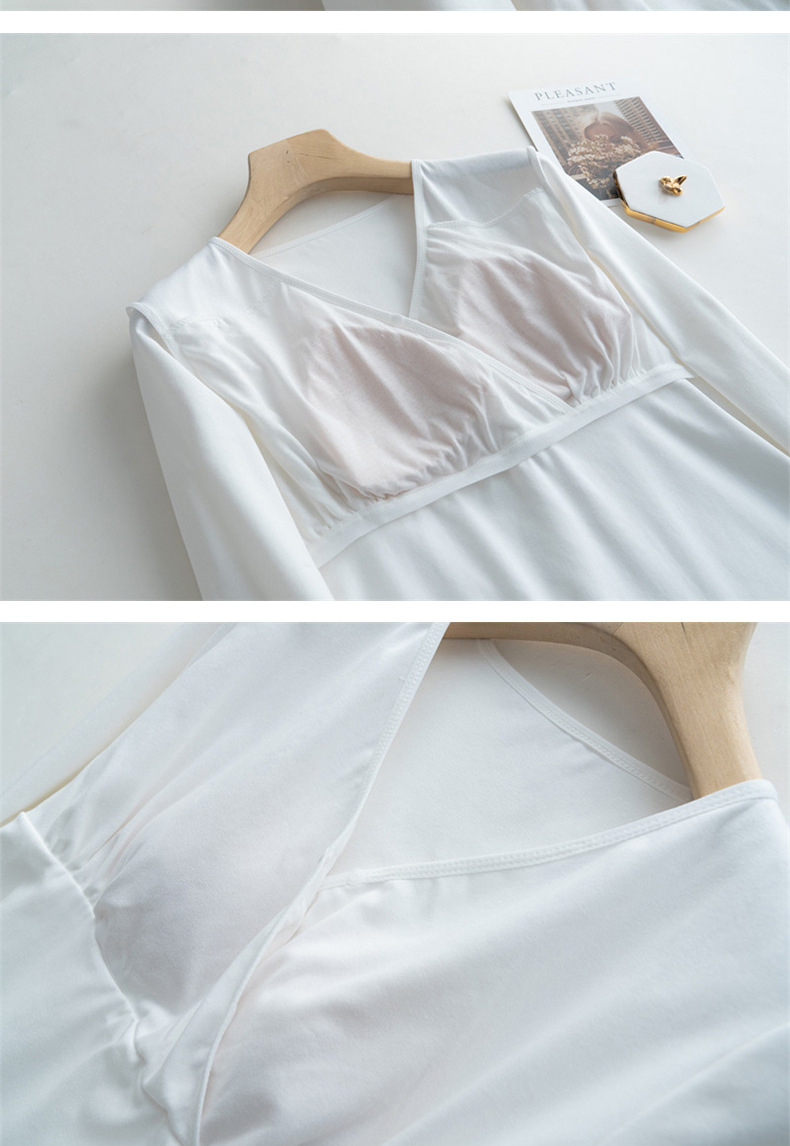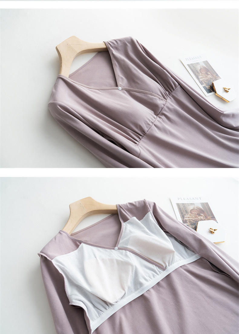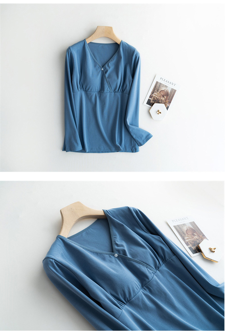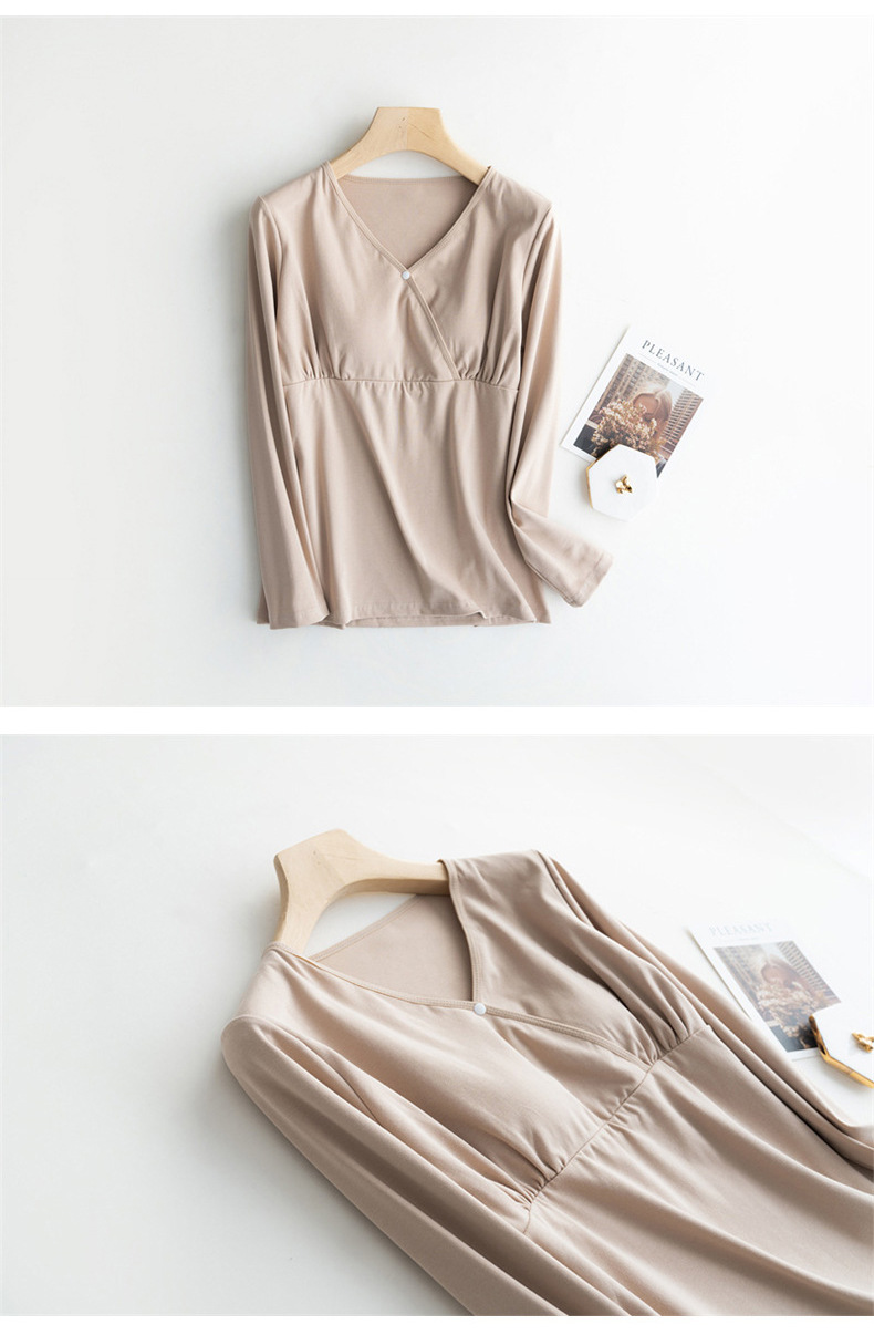 胸パッド付き哺乳パジャマ春夏秋の薄い長袖上着の肌に優しい授乳妊婦服vネック