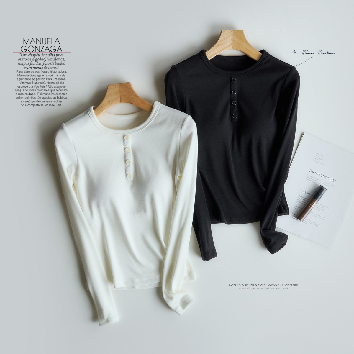 奶油可可 带胸垫纽扣圆领针织t恤长袖修身内搭针织衫上衣女秋衣