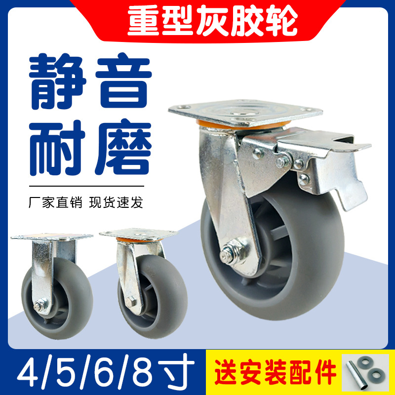 重型静音灰輪平板押し車輪方向車輪ブレーキ付き4568インチゴムホイール万能車輪キャスター