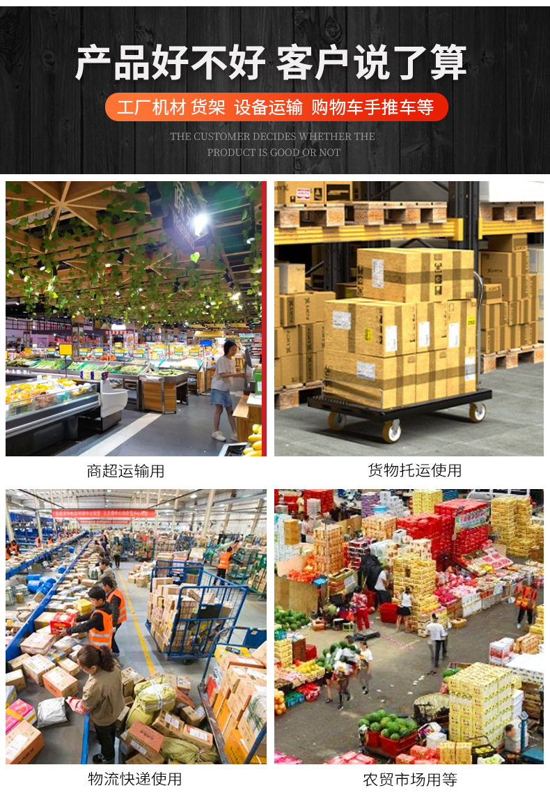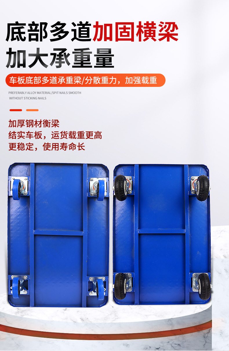 プラスチックスチールフラットベッドサイレントトロリー折りたたみ物流トラック貨物プラスチック肥厚トロリー倉庫トロリー