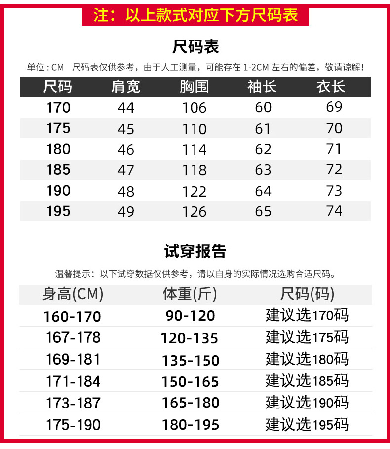 M(170),L(175),XL(180),XXL(185),XXXL(190),4XL(195)