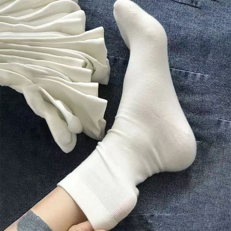 高颜値白靴下レディース中筒夏通気吸汗防臭薄いタイプスタッキングソックス潮松口月子靴下女性