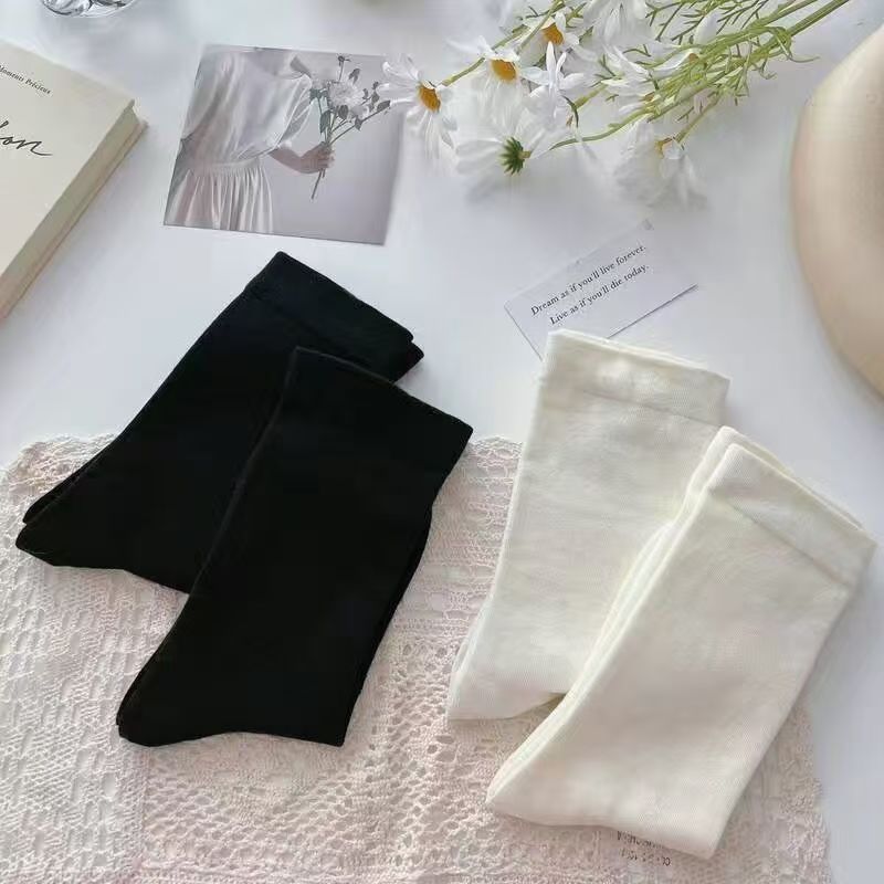 靴下の女性の中筒の積み重ねの靴下の春の夏の日系の白黒の純色の中筒の靴下のinsの潮の長い筒の月子の靴下