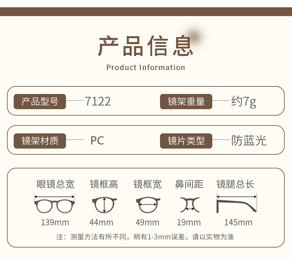 高級白栗ブラウン近視眼鏡女ins高颜値配度数女防ブルーレイ平光鏡超軽量