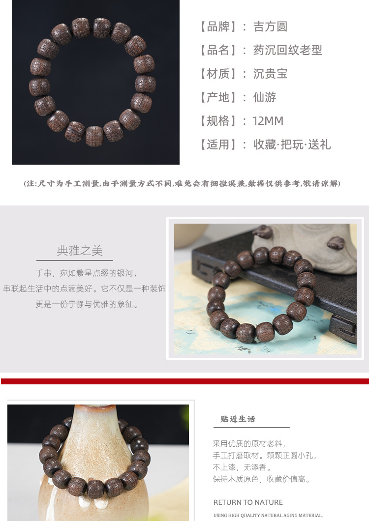 熟成黒油崖柏高油性古材太行仏珠12mm単円手串卸売
