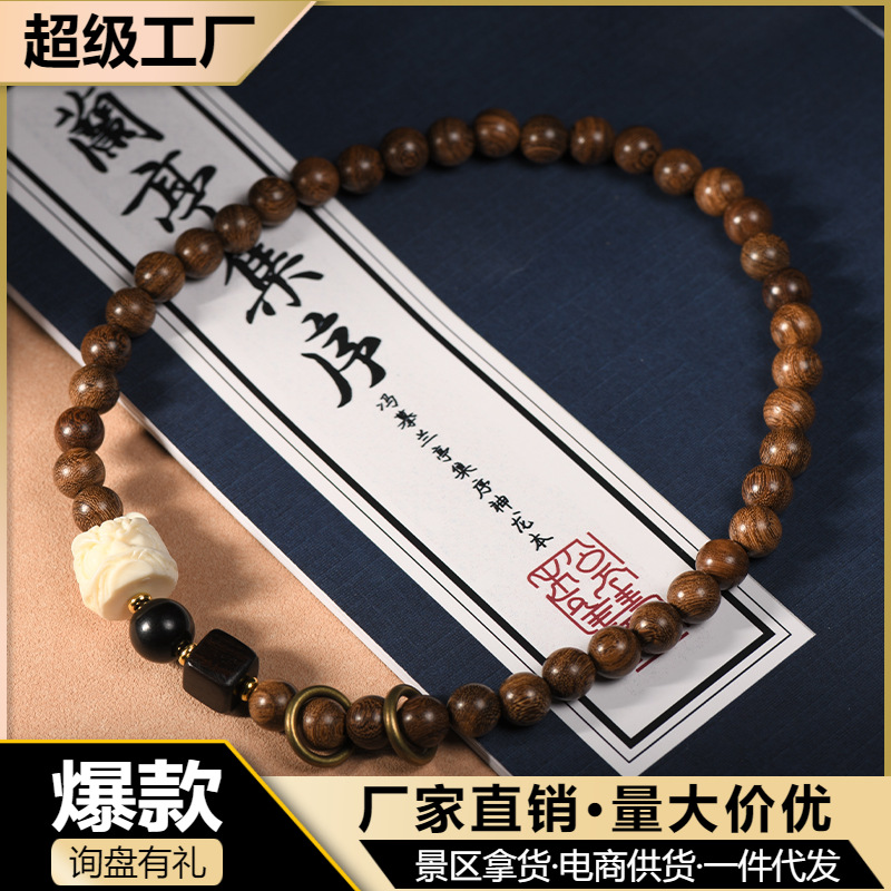 菩薩奇楠沈香木、貴重な宝物、沈香の角材、中国風、新中式ブレスレット、カップルギフトブレスレット