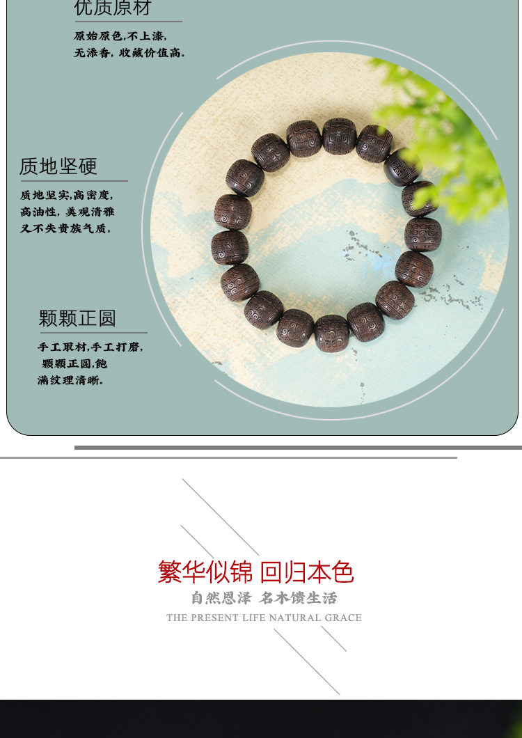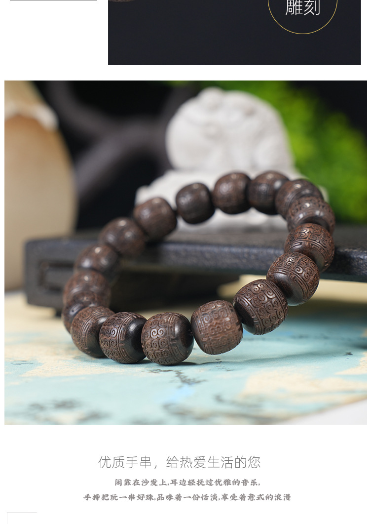 绿檀紫檀木黑檀雕刻莲花 民族风手链文玩木质佛珠手串礼物礼品