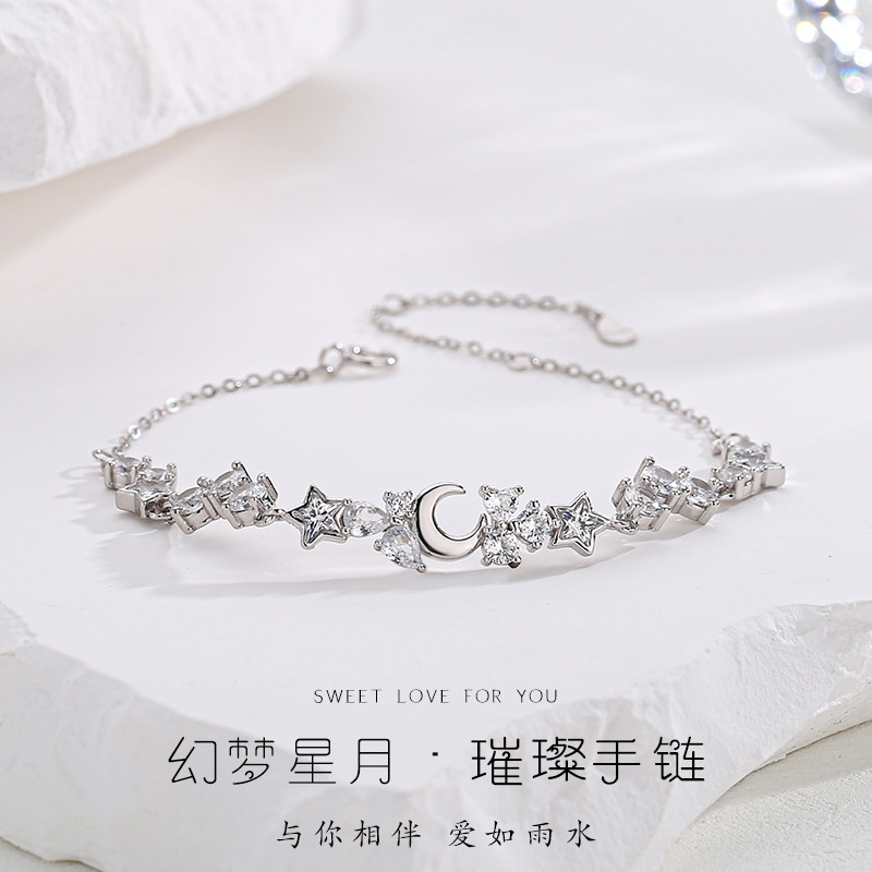 S999足銀輝く星月ブレスレット女性百合高級感新中国式小衆デザインジルコンアクセサリーins