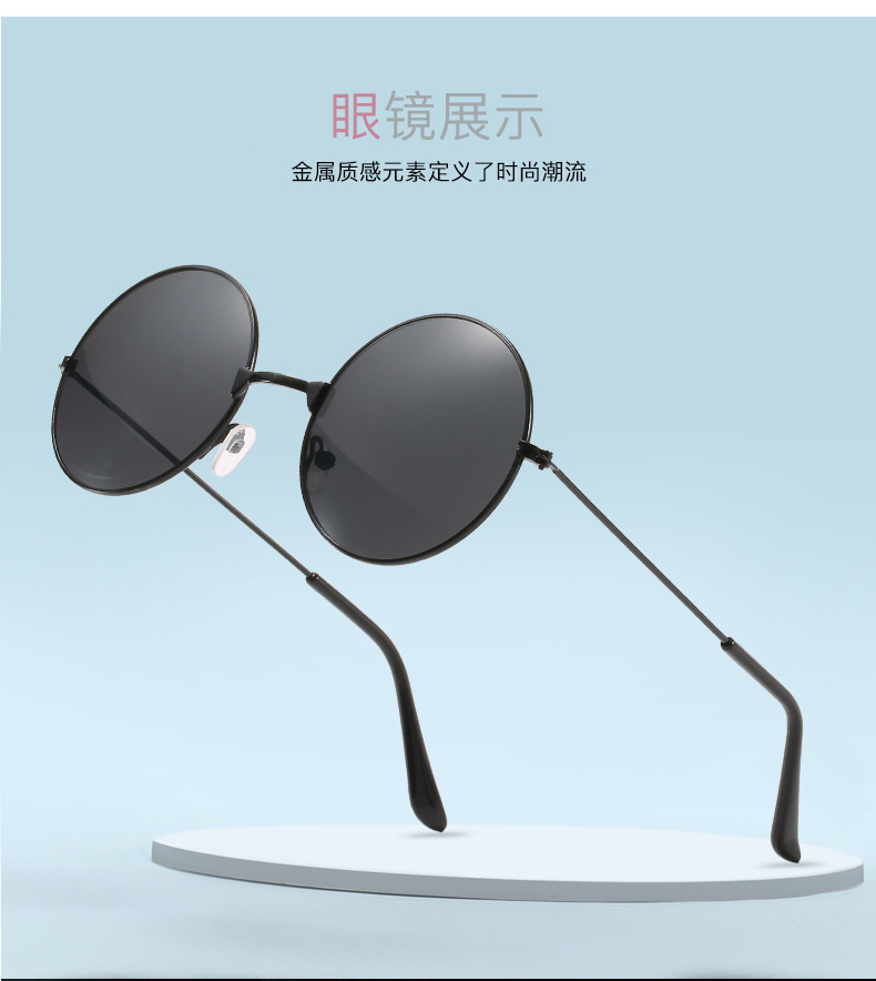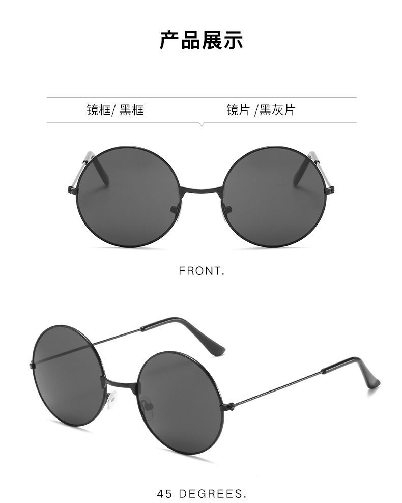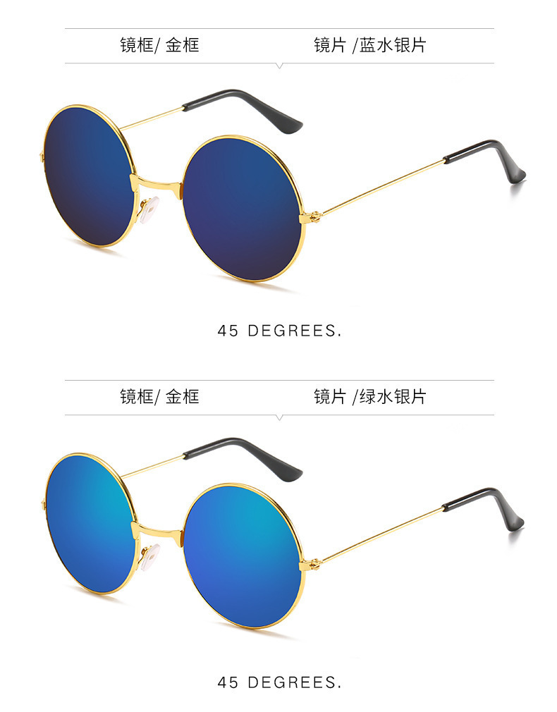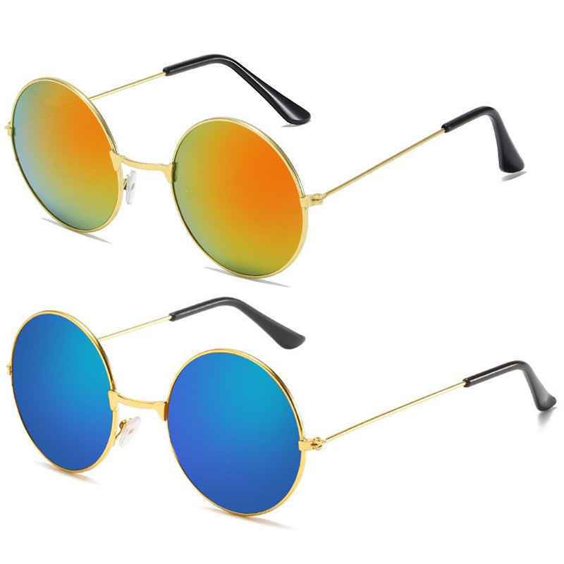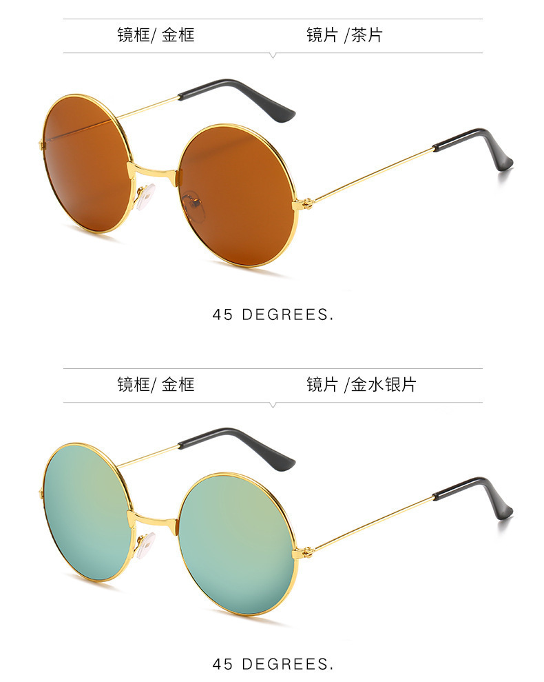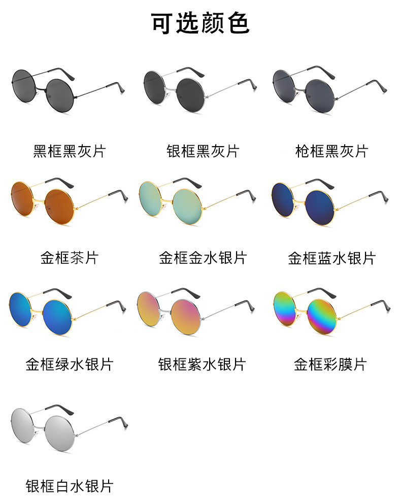 金属边框全框时尚太阳镜 嬉皮士墨镜成人儿童可佩戴 复古圆形彩色