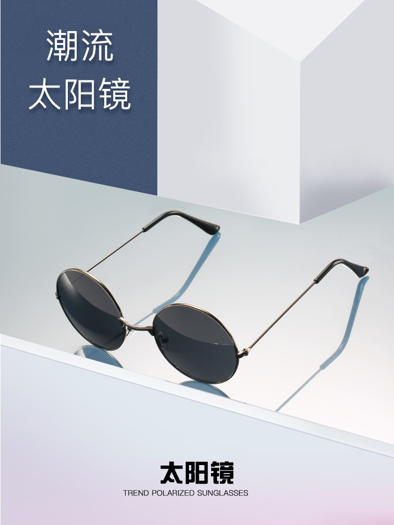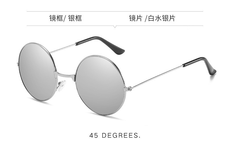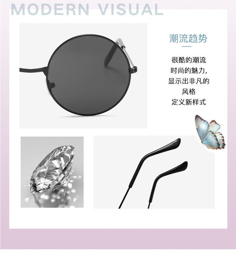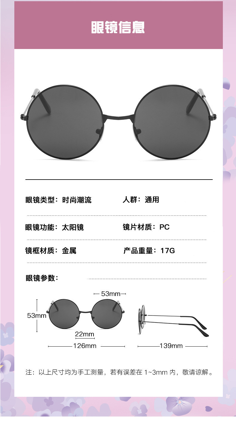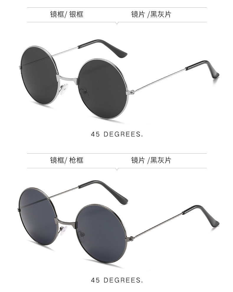 金属边框全框时尚太阳镜 嬉皮士墨镜成人儿童可佩戴 复古圆形彩色