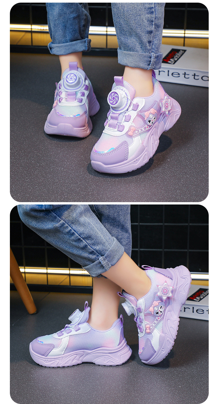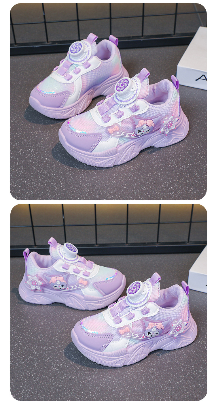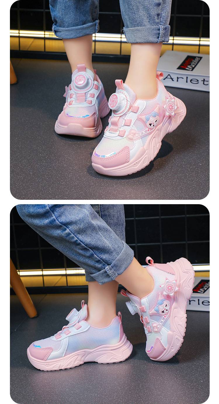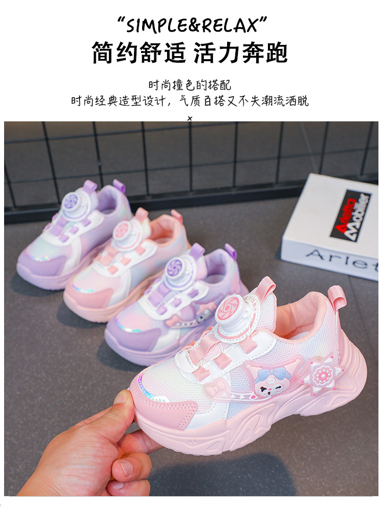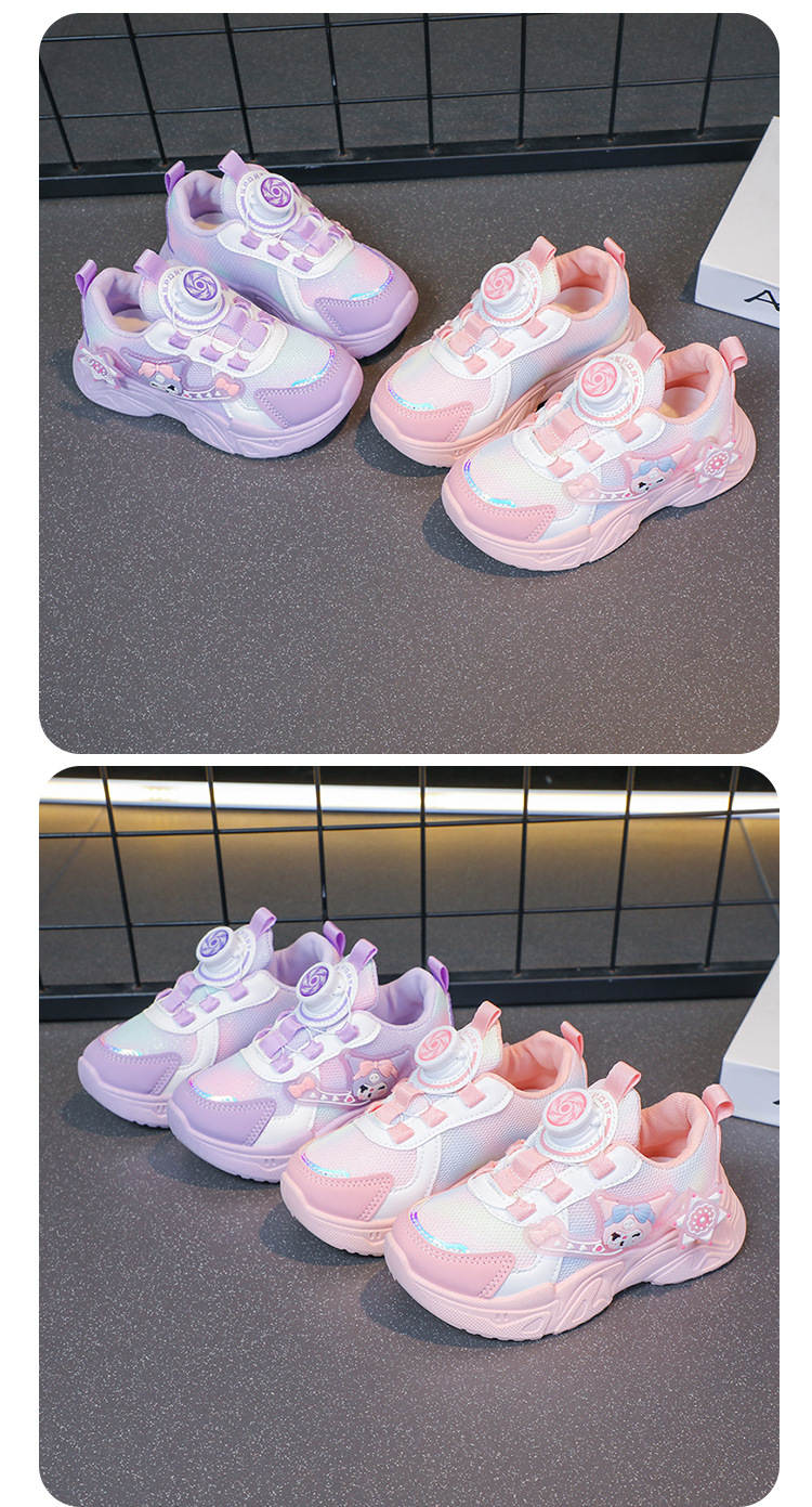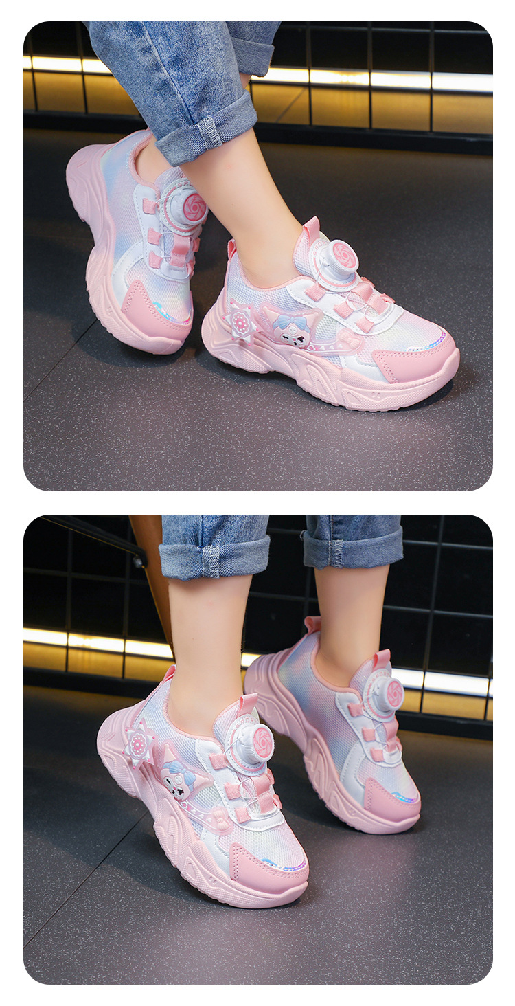 子供用スポーツシューズ 2025 春と秋の通気性メッシュ漫画多用途女の子用シューズソフトソール回転ボタンランニングシューズ