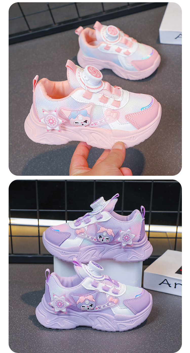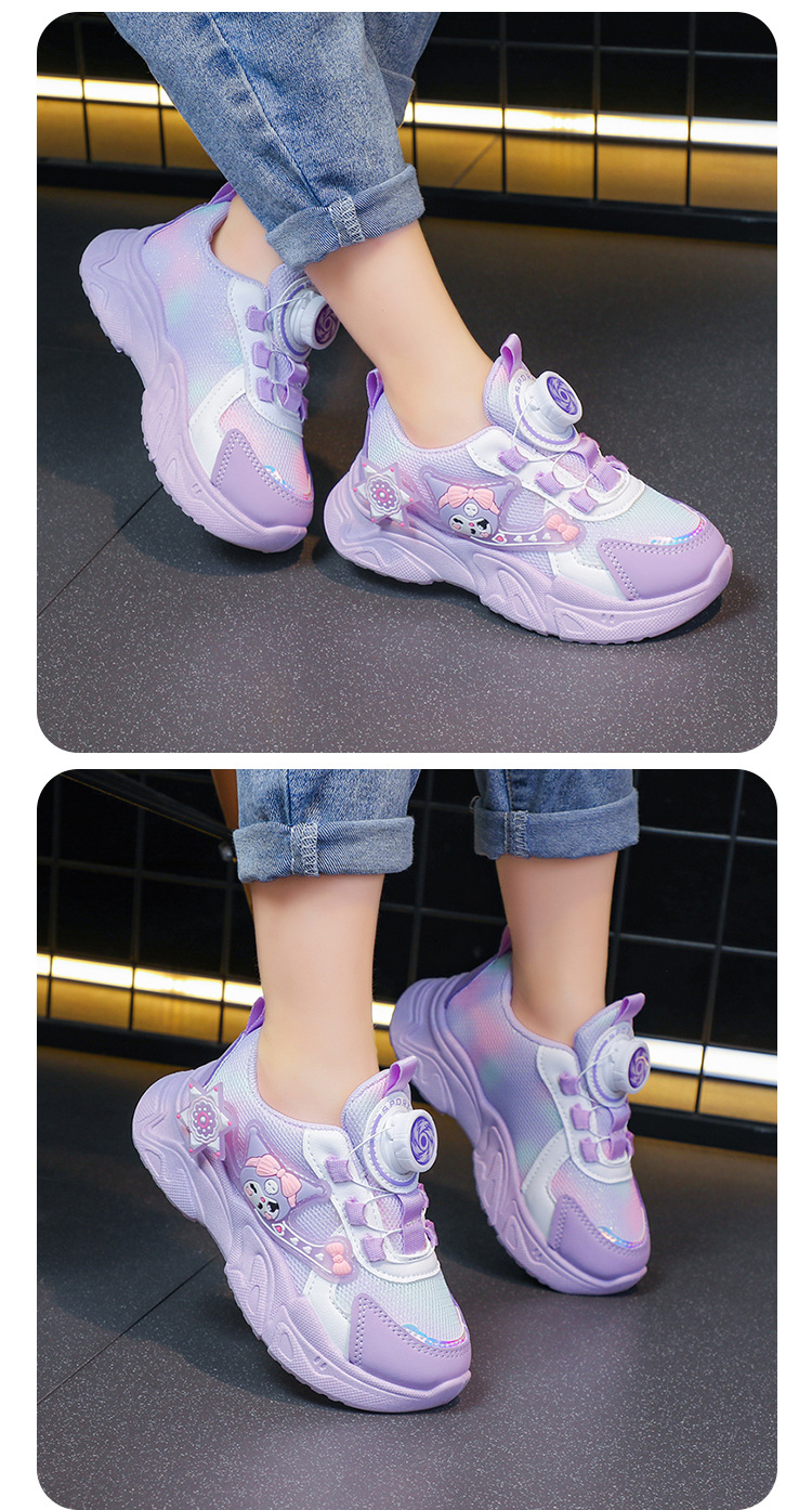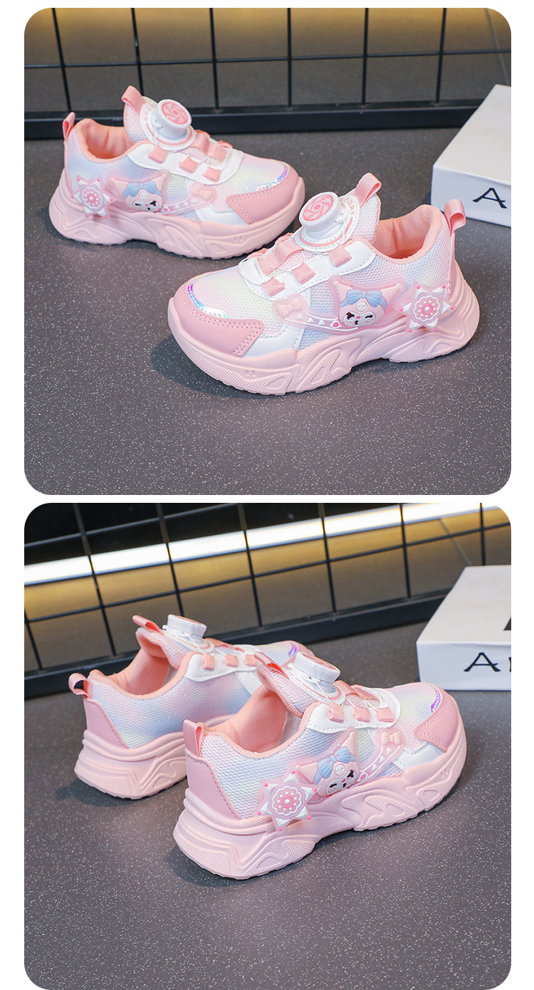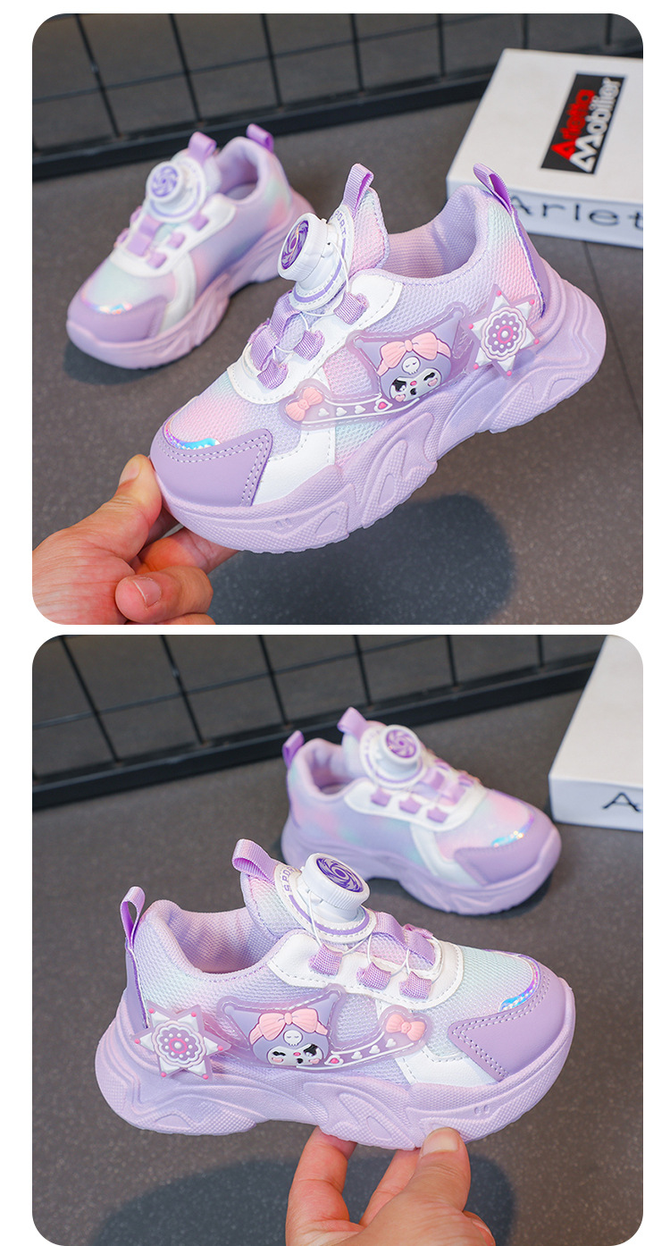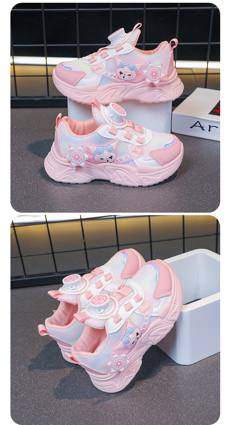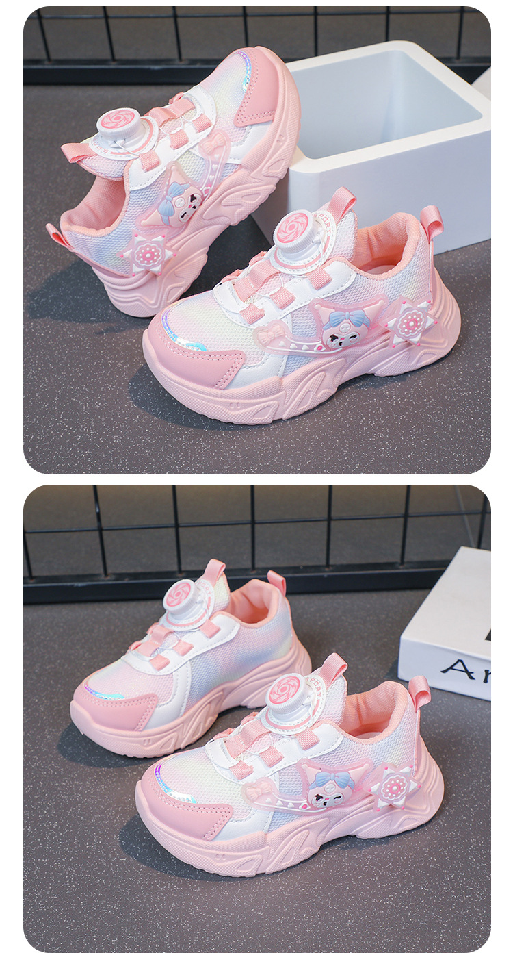 子供用スポーツシューズ 2025 春と秋の通気性メッシュ漫画多用途女の子用シューズソフトソール回転ボタンランニングシューズ