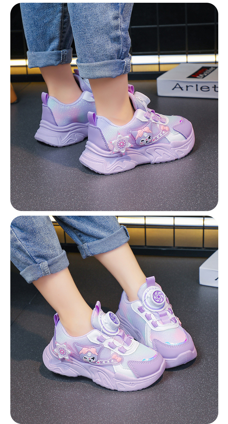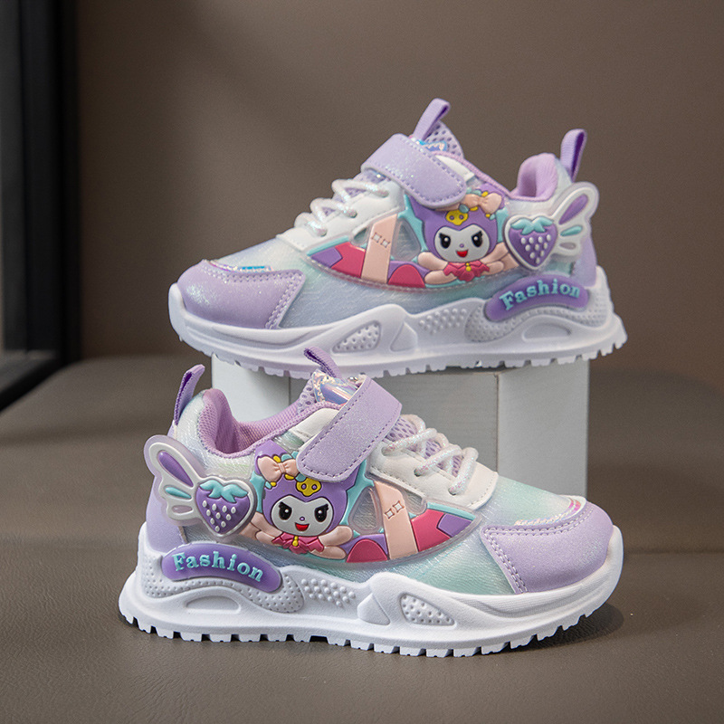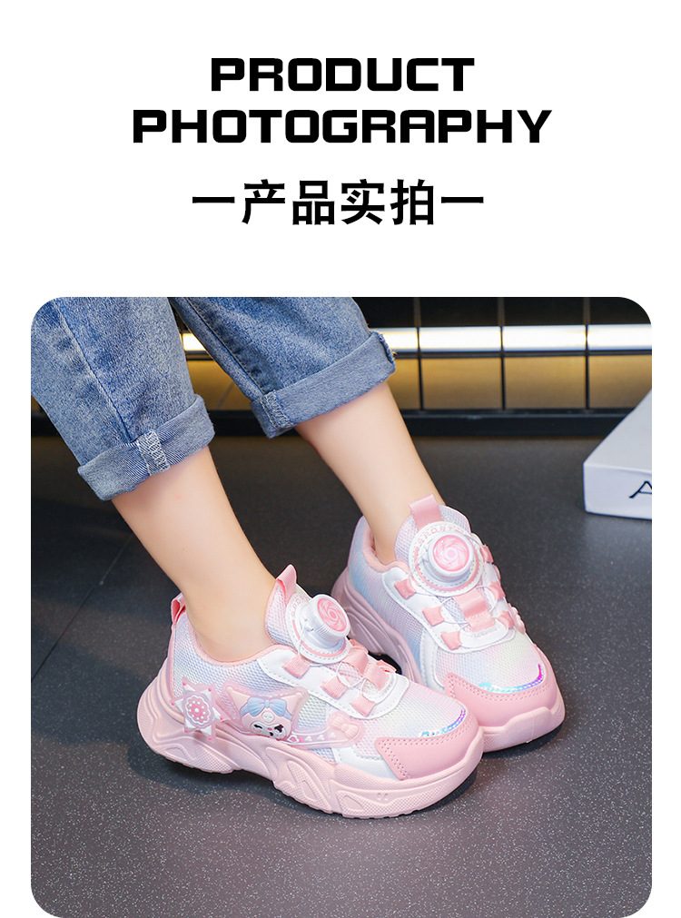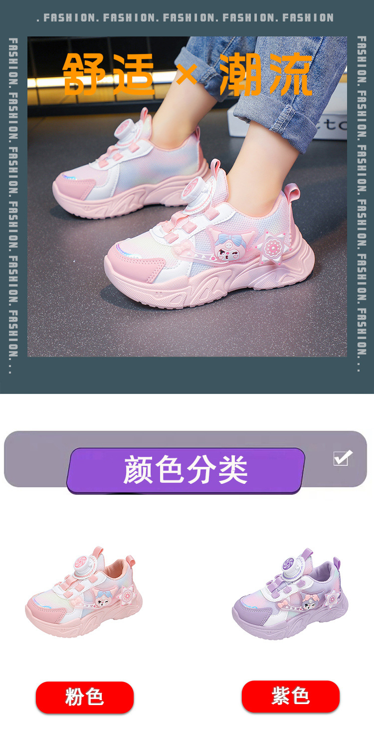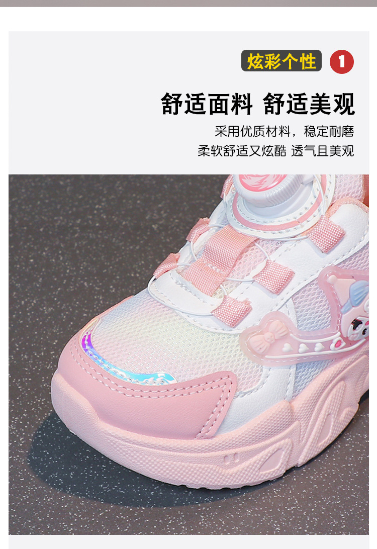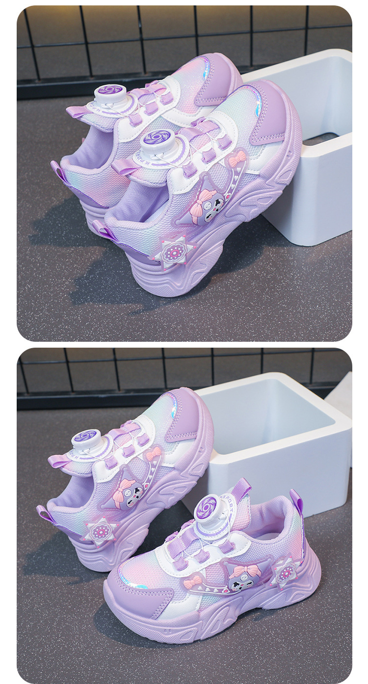 子供用スポーツシューズ 2025 春と秋の通気性メッシュ漫画多用途女の子用シューズソフトソール回転ボタンランニングシューズ