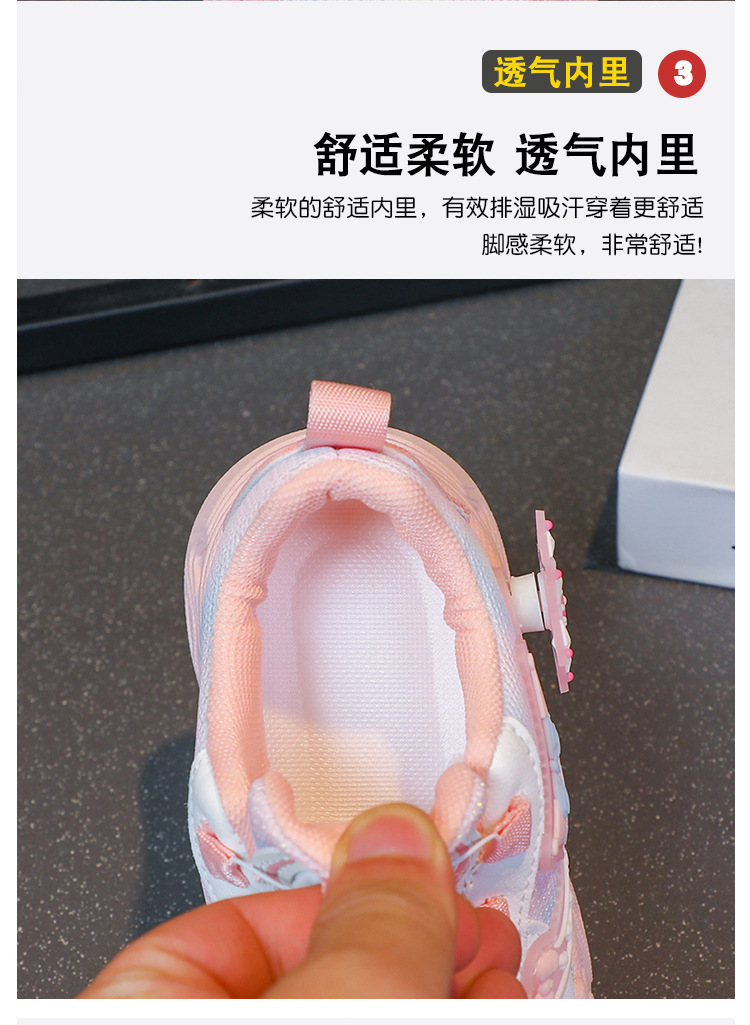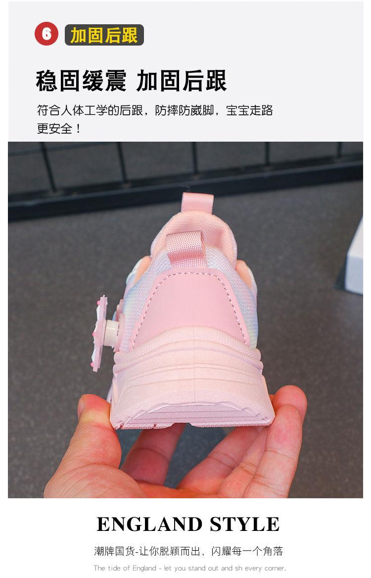 女童鞋子2025春秋季新款网面女孩运动鞋旋转纽扣跑步鞋公主老爹鞋