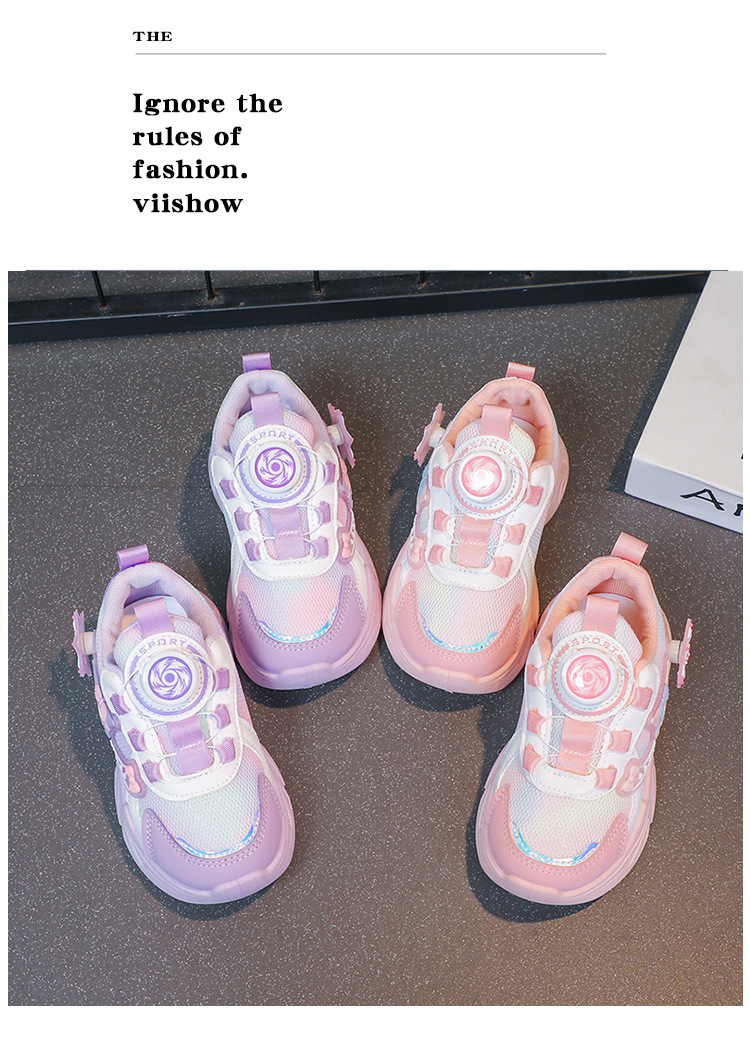 女の子の靴 2025 春と秋の新スタイル回転ボタン通気性子供用ダッドシューズ多用途女の子ランニングスポーツシューズ