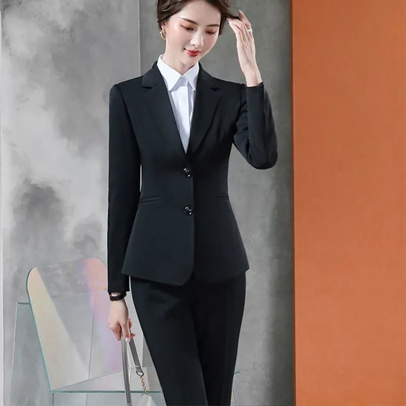 2024年秋冬新作職業服レディース2粒バックルスリムスーツ正装銀行ホテルホワイトカラー作業服