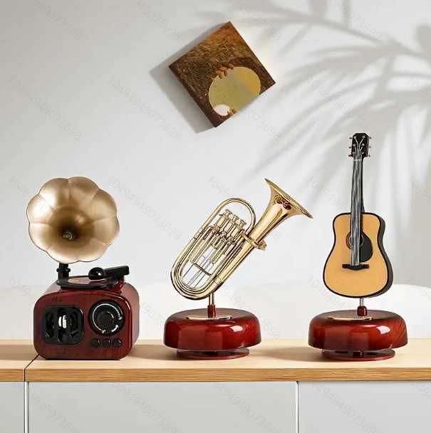 回転バイオリンオルゴールギター楽器オルゴールサックスモデルオフィスリビングクリエイティブ置物プレゼント