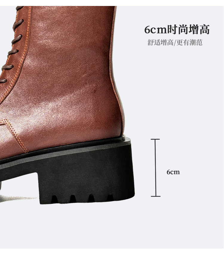 一件の代理高さは6cmの中筒靴男性の全真皮松餅の厚い底の英倫馬丁靴の頭が高くなりました。