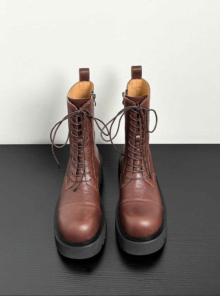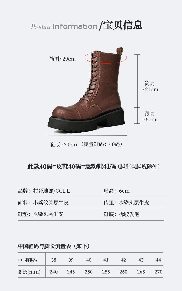 代理長筒馬丁靴男性本革の頭が高くなります。