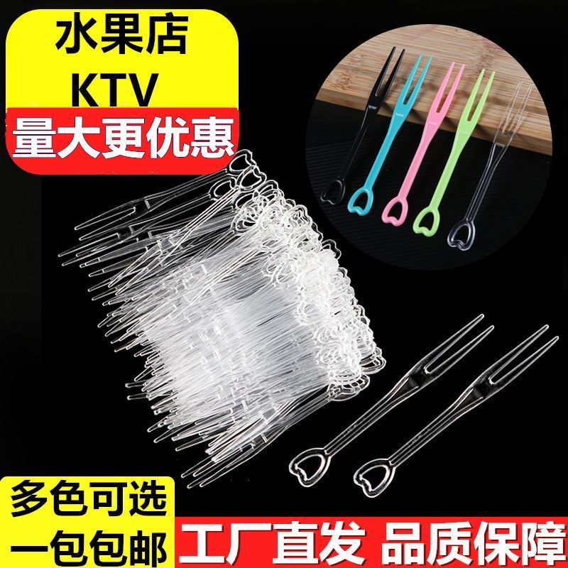 果物フォーク使い捨て包装プラスチック果物署名ケーキフォーク透明KTV商用小フォーク果物挿入