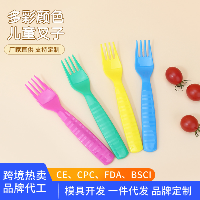子供用フォーク、プラスチックフォーク、子供用栄養補助フォーク、学生用ポータブルプラスチックデザートフルーツフォークの国境を越えた配送