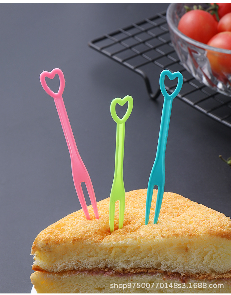 使い捨てフルーツフォーク2歯ケーキデザート家庭用缶愛ハート型天然竹製独立缶フルーツラベル