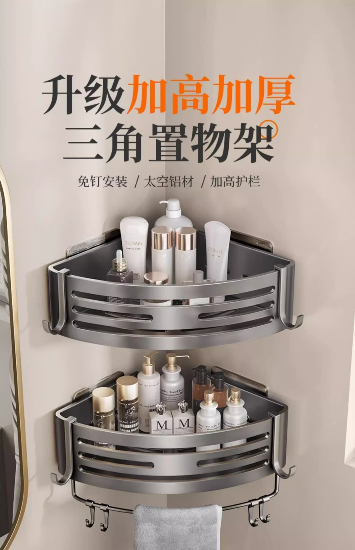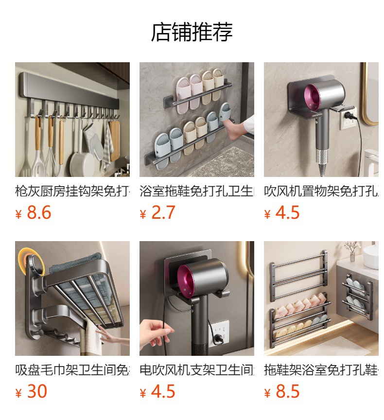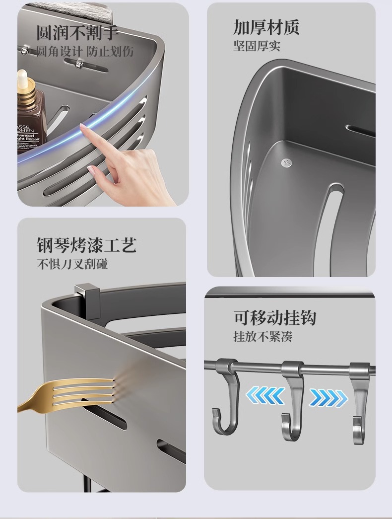 吸盤式物置棚洗面台トイレ壁収納棚宇宙アルミ壁掛け穴なし浴室物置棚