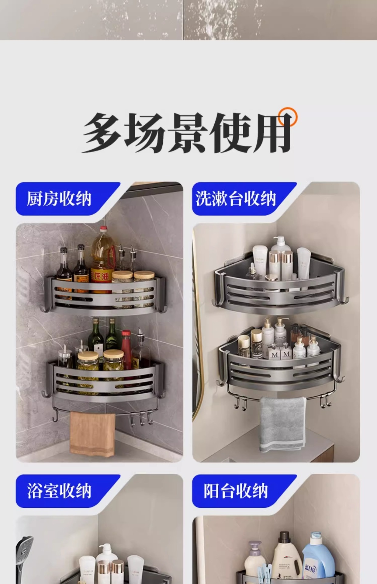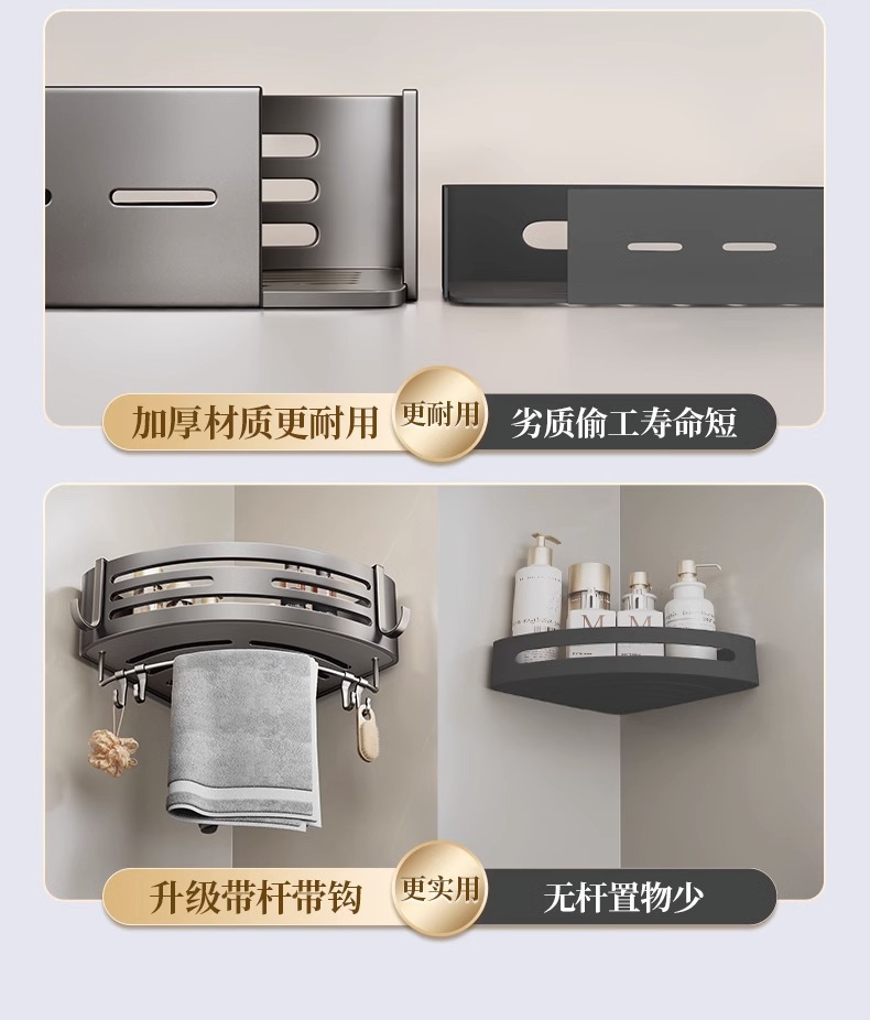 免打孔卫浴置物架卫生间收纳加厚三角架厕所浴室置物架淋浴间壁挂