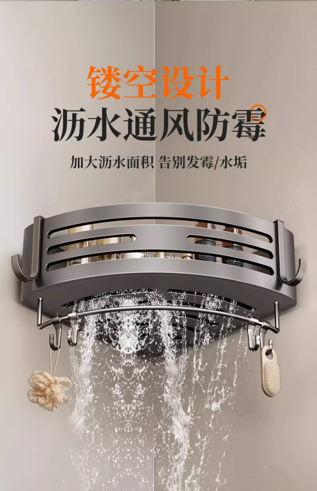シャワースタンドトイレ穴なし浴室シャワールーム入浴剤シャンプー壁掛け収納棚トレイ