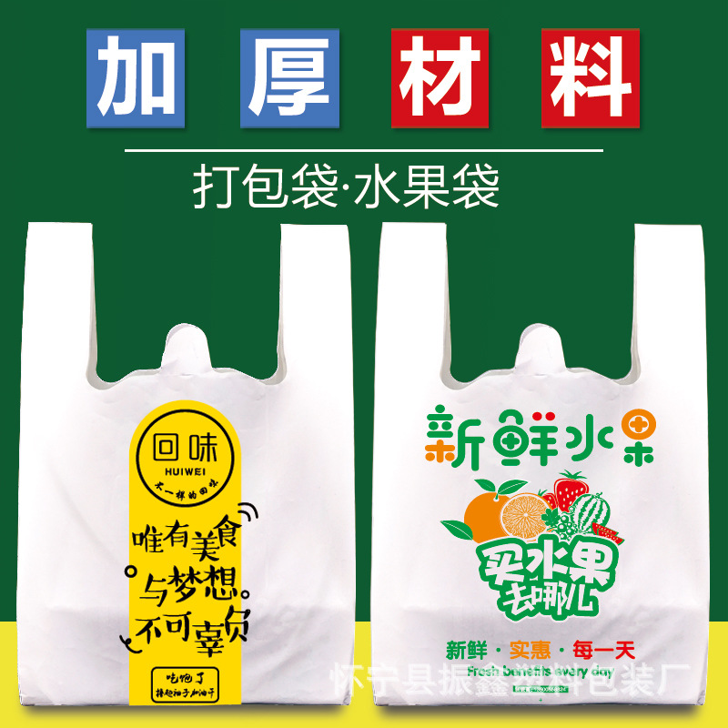 厚い白いベストバッグビニール袋透明食品外売り袋便利袋馬挟みレジ袋印刷