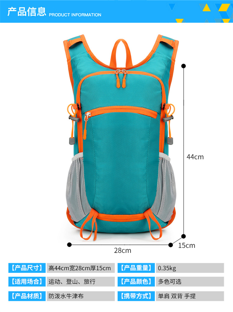 新しい登山バッグ 20L アウトドアレジャーハイキング軽量サイクリングバックパック大容量旅行撥水バックパック
