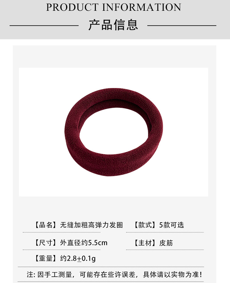 加粗毛巾圈高马尾丸子头绳无痕高弹力发圈无接缝头绳黑色耐用发饰