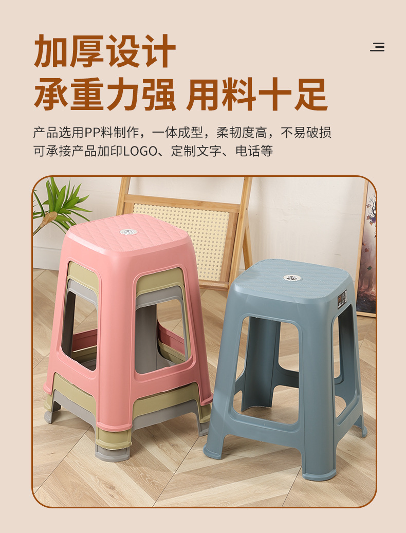 卸売厚みのあるプラスチックスツール北欧プラスチックベンチ大人のハイスツールインターネット有名人のプラスチック椅子正方形のスツールプラスチックスツール