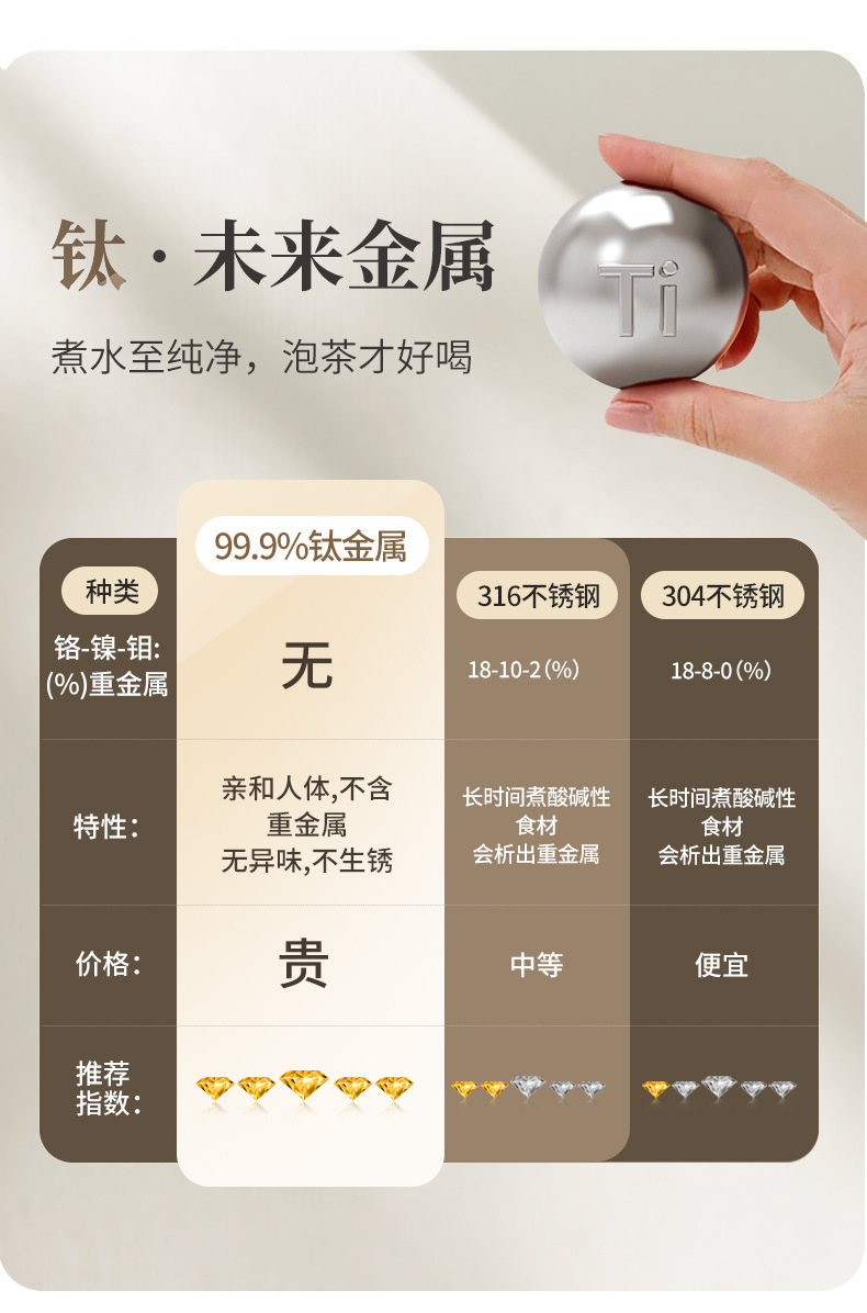 3:普通主机配的钛壶手柄和盖子提手,是喷漆工艺;水晶主机则为水转印木纹工艺。