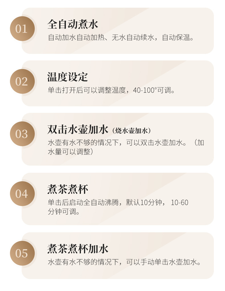 4:水晶主机煮茶和烧水都有恒温功能,普通主机只水壶有恒温功能。