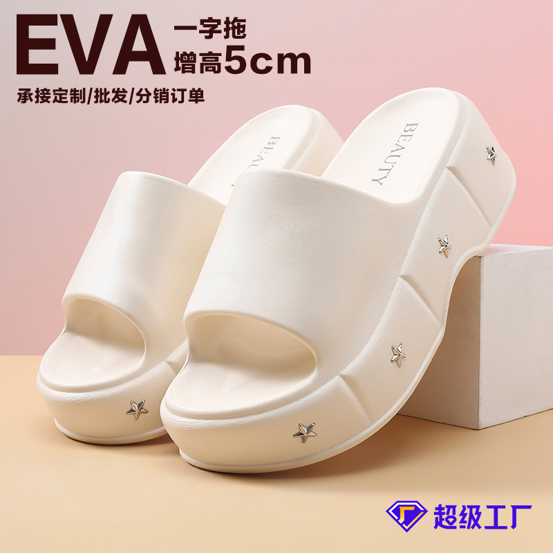 厚底7cmの女性用スリッパ、おしゃれなビーチサンダル、柔らかい底、うんちを踏むような感覚、EVAサンダル、室内用ホームスリッパ