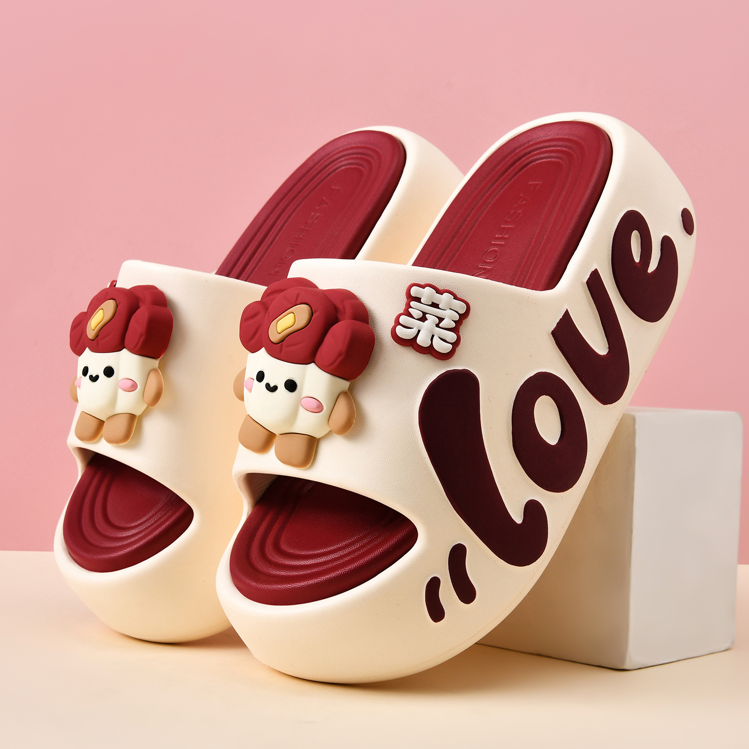 Yuanyang アップルスリッパ女性の夏のアウターウェア 2025 新しいインターネット有名人ホットスタイルノンスリップ厚底かわいい漫画サンダル