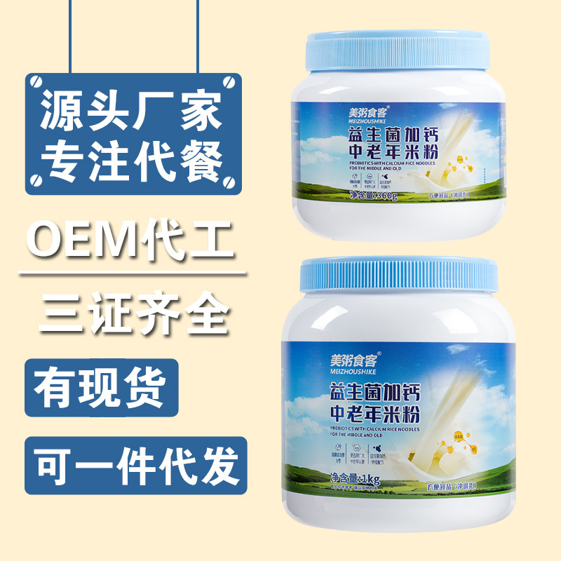 美粥食客益生菌加钙中老年米粉360g/1kg双规格桶装营养粉诚邀代理