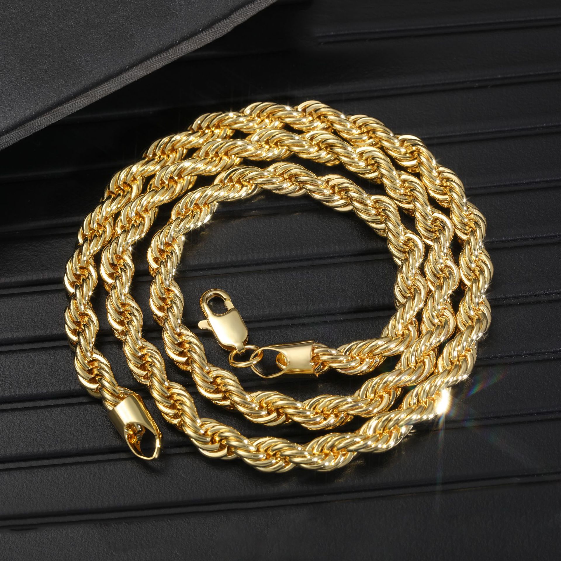 镀金麻花项链345678规格齐全 黄铜镀真金色麻绳链 麻花链男女项饰
