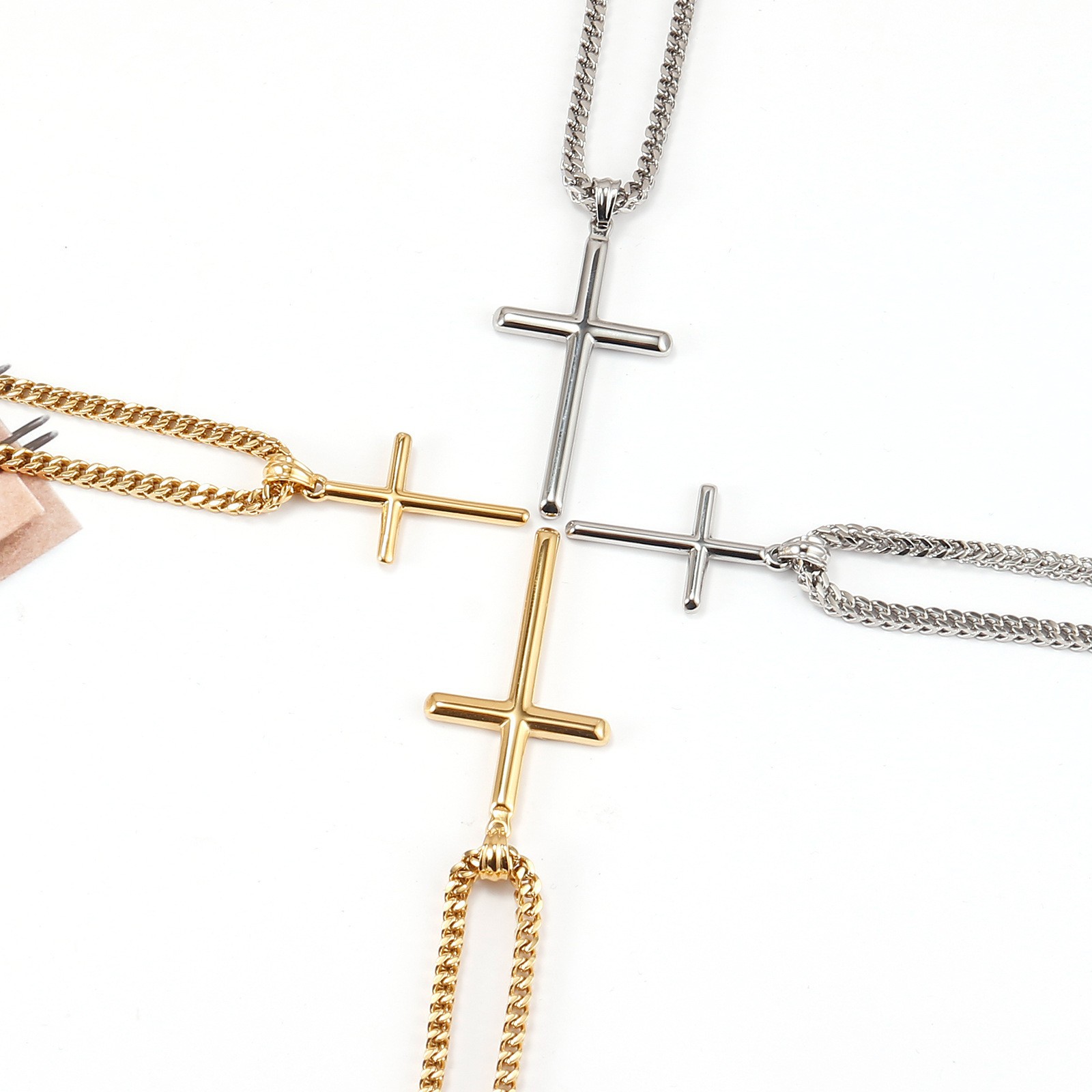 クロスボーダーアクセサリー シンプルクロスネックレス 欧米風高品質ペンダント チタン鋼アクセサリー ステンレスネックレス メンズ