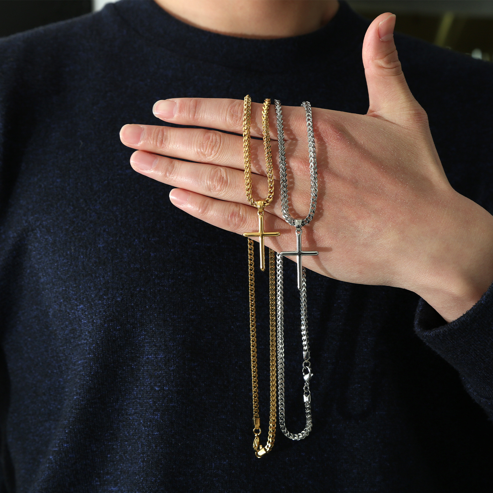 欧米風クロスボーダーチタン鋼光沢十字架ペンダントネックレス高級感メンズリバーシブルチェーンステンレス卸売チェーン